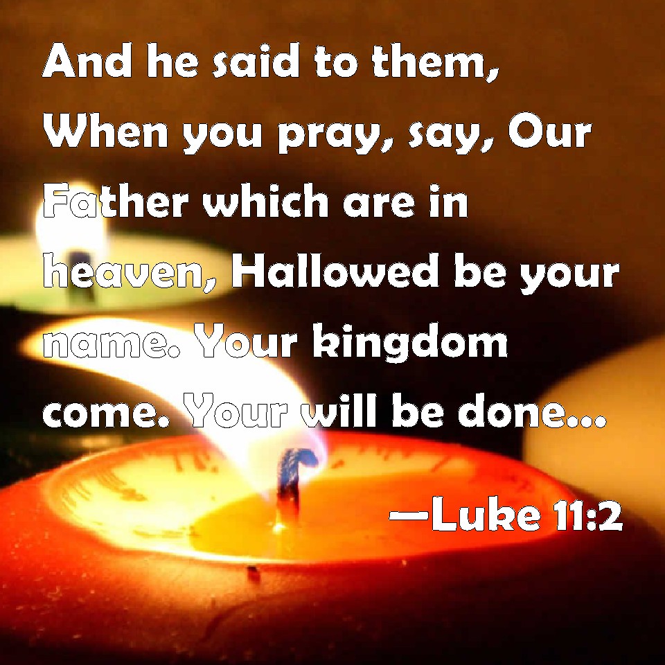 Choose a Background Luke 11:2 And he said to them, When you pray, say, Our Father which are in heaven, Hallowed be your name. Your kingdom come. Your will be done, as in heaven, so in earth. KJV: And he said unto them, When ye pray, say, Our Father which art in heaven, Hallowed be thy name. Thy kingdom come. Thy will be done, as in heaven, so in earth. DRB: And he said to them: When you pray, say: Father, hallowed be thy name. Thy kingdom come. DBT: And he said to them, When ye pray, say, Father, thy name be hallowed; thy kingdom come; ERV: And he said unto them, When ye pray, say, Father, Hallowed be thy name. Thy kingdom come. WBT: And he said to them, When ye pray, say, Our Father who art in heaven, Hallowed be thy name. Thy kingdom come. Thy will be done, as in heaven, so on earth. WEB: He said to them, "When you pray, say, 'Our Father in heaven, may your name be kept holy. May your Kingdom come. May your will be done on Earth, as it is in heaven. YLT: And he said to them, 'When ye may pray, say ye: Our Father who art in the heavens; hallowed be Thy name: Thy reign come; Thy will come to pass, as in heaven also on earth;Links Luke 11:2 NIV • Luke 11:2 NLT • Luke 11:2 ESV • Luke 11:2 NASB • Luke 11:2 KJV • Luke 11:2 Interlinear • Luke 11:2 Commentaries • Luke 11:2 Parallel Texts • Luke 11:2 Bible Apps • Luke 11:2 Parallel • Bible Hub |