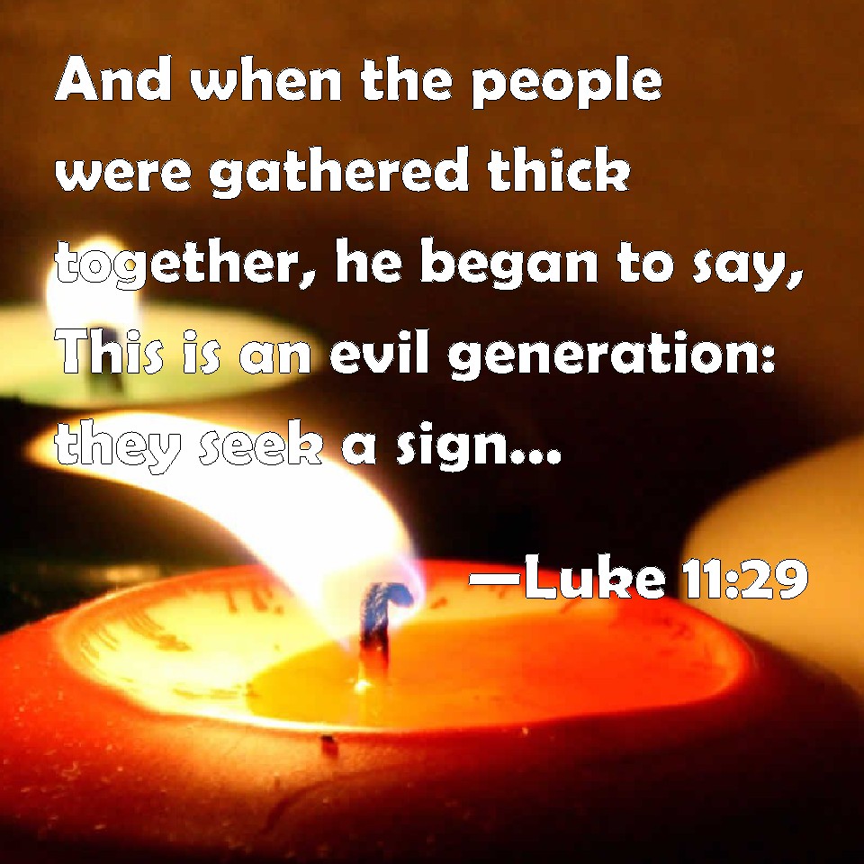 Choose a Background Luke 11:29 And when the people were gathered thick together, he began to say, This is an evil generation: they seek a sign; and there shall no sign be given it, but the sign of Jonas the prophet. KJV: And when the people were gathered thick together, he began to say, This is an evil generation: they seek a sign; and there shall no sign be given it, but the sign of Jonas the prophet. DRB: And the multitudes running together, he began to say: This generation is a wicked generation: it asketh a sign, and a sign shall not be given it, but the sign of Jonas the prophet. DBT: But as the crowds thronged together, he began to say, This generation is a wicked generation: it seeks a sign, and a sign shall not be given to it but the sign of Jonas. ERV: And when the multitudes were gathering together unto him, he began to say, This generation is an evil generation: it seeketh after a sign; and there shall no sign be given to it but the sign of Jonah. WBT: And when the people were assembled in crowds, he began to say, This is an evil generation: they seek a sign; and there shall no sign be given to it, but the sign of Jonah the prophet. WEB: When the multitudes were gathering together to him, he began to say, "This is an evil generation. It seeks after a sign. No sign will be given to it but the sign of Jonah, the prophet. YLT: And the multitudes crowding together upon him, he began to say, 'This generation is evil, a sign it doth seek after, and a sign shall not be given to it, except the sign of Jonah the prophet,Links Luke 11:29 NIV • Luke 11:29 NLT • Luke 11:29 ESV • Luke 11:29 NASB • Luke 11:29 KJV • Luke 11:29 Interlinear • Luke 11:29 Commentaries • Luke 11:29 Parallel Texts • Luke 11:29 Bible Apps • Luke 11:29 Parallel • Bible Hub |