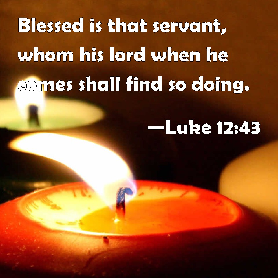 Luke 12:43 Blessed is that servant, whom his lord when he comes shall find so doing.