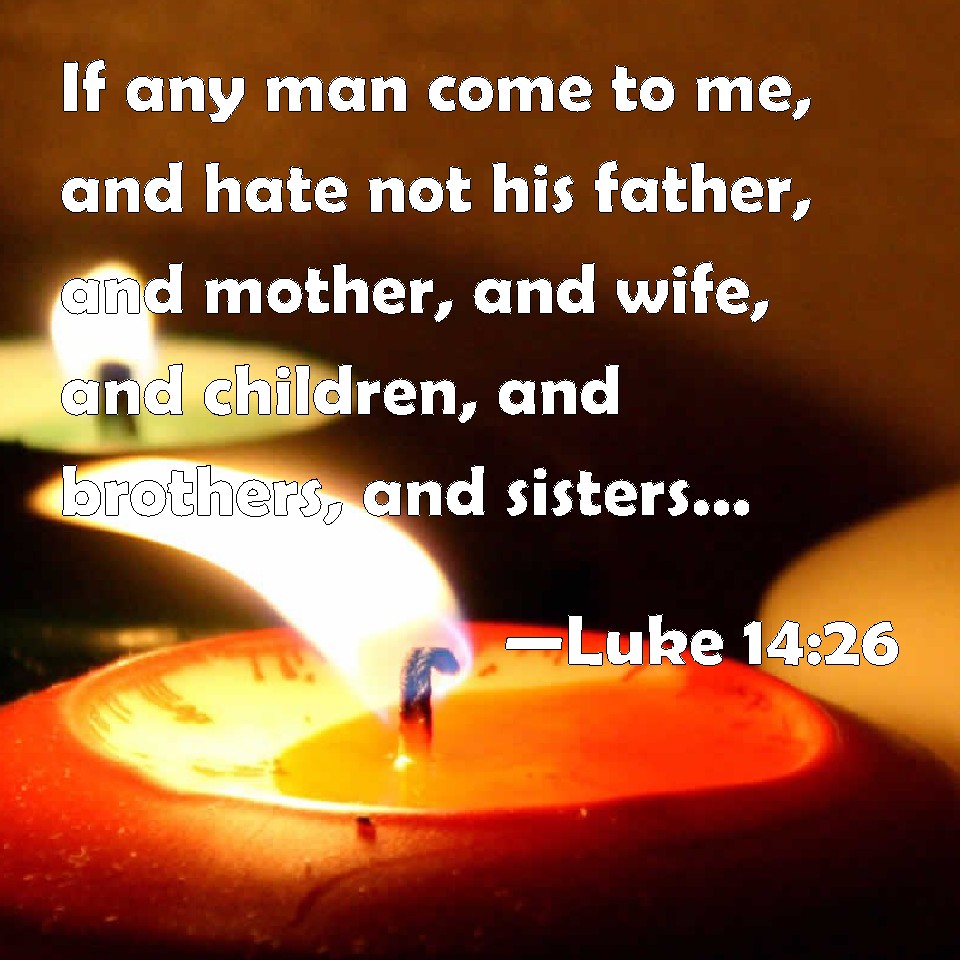 Luke 14:26 If any man come to me, and hate not his father, and mother, and wife, and children, and brothers, and sisters, yes, and his own life also, he cannot be my disciple.