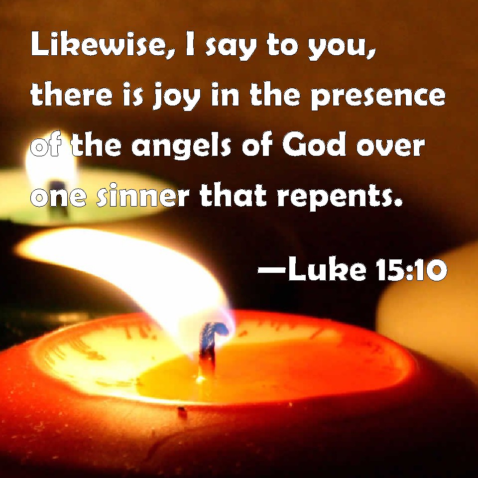 Choose a Background Luke 15:10 Likewise, I say to you, there is joy in the presence of the angels of God over one sinner that repents. KJV: Likewise, I say unto you, there is joy in the presence of the angels of God over one sinner that repenteth. DRB: So I say to you, there shall be joy before the angels of God upon one sinner doing penance. DBT: Thus, I say unto you, there is joy before the angels of God for one repenting sinner. ERV: Even so, I say unto you, there is joy in the presence of the angels of God over one sinner that repenteth. WBT: Likewise, I say to you, There is joy in the presence of the angels of God over one sinner that repenteth. WEB: Even so, I tell you, there is joy in the presence of the angels of God over one sinner repenting." YLT: 'So I say to you, joy doth come before the messengers of God over one sinner reforming.'Links Luke 15:10 NIV • Luke 15:10 NLT • Luke 15:10 ESV • Luke 15:10 NASB • Luke 15:10 KJV • Luke 15:10 Interlinear • Luke 15:10 Commentaries • Luke 15:10 Parallel Texts • Luke 15:10 Bible Apps • Luke 15:10 Parallel • Bible Hub |