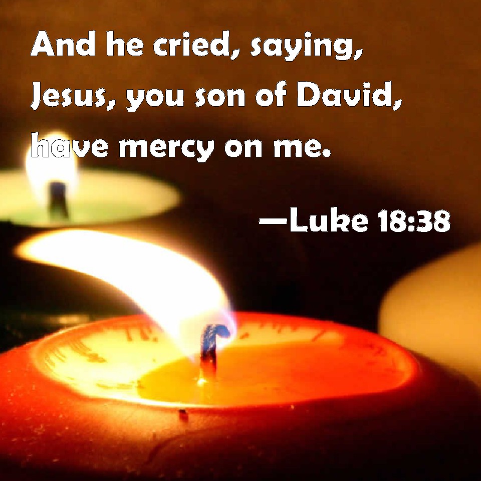 Choose a Background Luke 18:38 And he cried, saying, Jesus, you son of David, have mercy on me. KJV: And he cried, saying, Jesus, thou Son of David, have mercy on me. DRB: And he cried out, saying: Jesus, son of David, have mercy on me. DBT: And he called out saying, Jesus, Son of David, have mercy on me. ERV: And he cried, saying, Jesus, thou son of David, have mercy on me. WBT: And he cried, saying, Jesus, thou son of David, have mercy on me. WEB: He cried out, "Jesus, you son of David, have mercy on me!" YLT: and he cried out, saying, 'Jesus, Son of David, deal kindly with me;'Links Luke 18:38 NIV • Luke 18:38 NLT • Luke 18:38 ESV • Luke 18:38 NASB • Luke 18:38 KJV • Luke 18:38 Interlinear • Luke 18:38 Commentaries • Luke 18:38 Parallel Texts • Luke 18:38 Bible Apps • Luke 18:38 Parallel • Bible Hub |