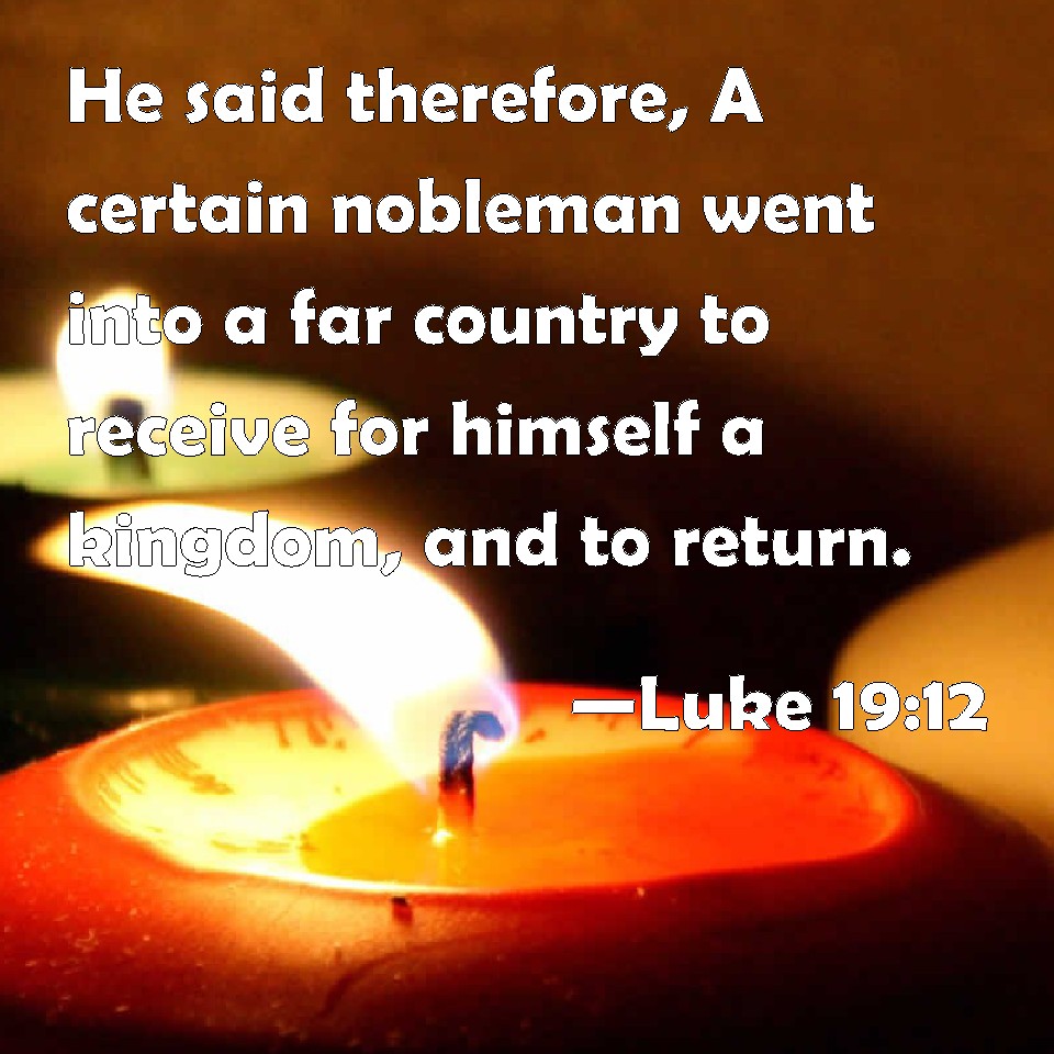 Choose a Background Luke 19:12 He said therefore, A certain nobleman went into a far country to receive for himself a kingdom, and to return. KJV: He said therefore, A certain nobleman went into a far country to receive for himself a kingdom, and to return. DRB: He said therefore: A certain nobleman went into a far country, to receive for himself a kingdom, and to return. DBT: He said therefore, A certain high-born man went to a distant country to receive for himself a kingdom and return. ERV: He said therefore, A certain nobleman went into a far country, to receive for himself a kingdom, and to return. WBT: He said therefore, A certain nobleman went into a far country to receive for himself a kingdom, and to return. WEB: He said therefore, "A certain nobleman went into a far country to receive for himself a kingdom, and to return. YLT: He said therefore, 'A certain man of birth went on to a far country, to take to himself a kingdom, and to return,Links Luke 19:12 NIV • Luke 19:12 NLT • Luke 19:12 ESV • Luke 19:12 NASB • Luke 19:12 KJV • Luke 19:12 Interlinear • Luke 19:12 Commentaries • Luke 19:12 Parallel Texts • Luke 19:12 Bible Apps • Luke 19:12 Parallel • Bible Hub |