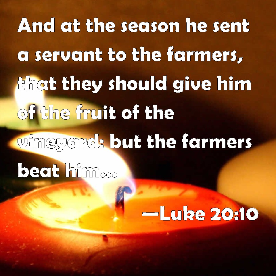 Luke 20:10 And at the season he sent a servant to the farmers, that they should give him of the fruit of the vineyard: but the farmers beat him, and sent him away empty.