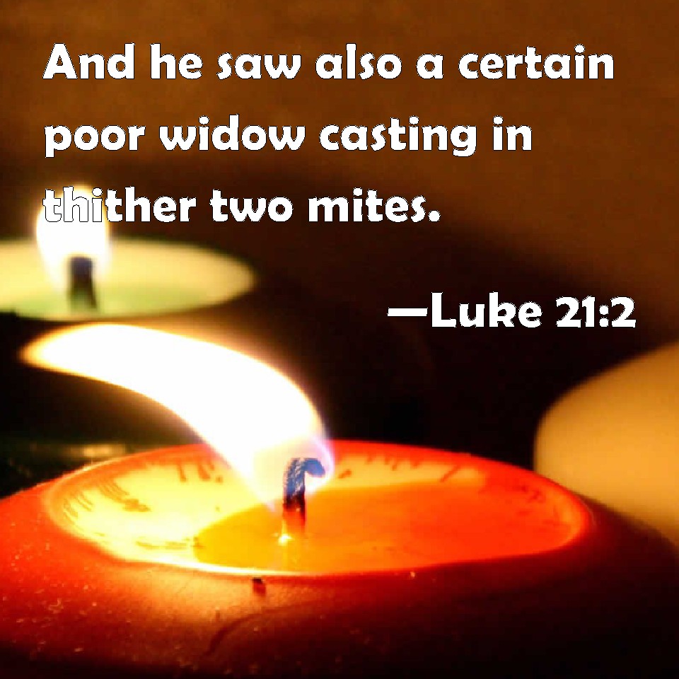 Luke 21:2 And he saw also a certain poor widow casting in thither two mites.