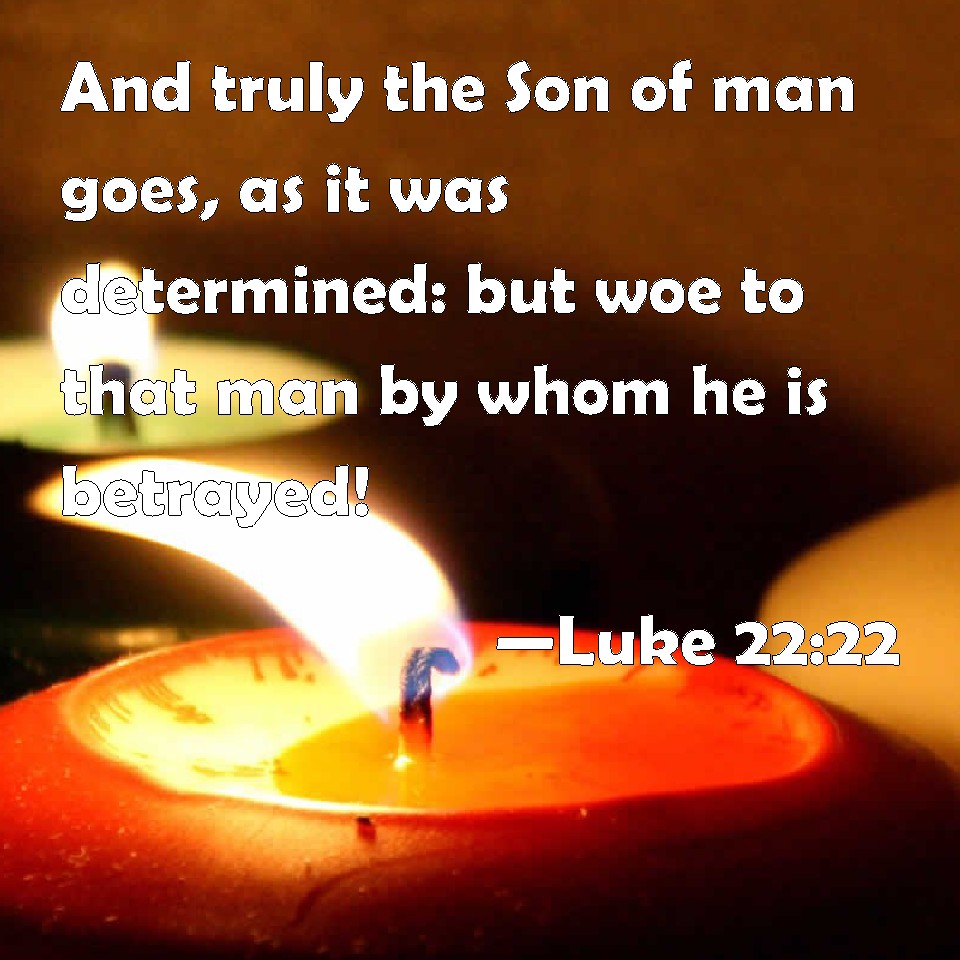 Luke 22:22 And truly the Son of man goes, as it was determined: but woe to that man by whom he is betrayed!