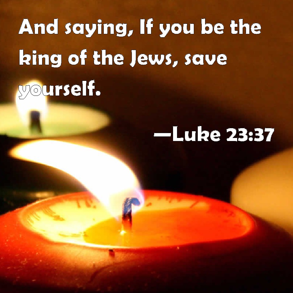 Choose a Background Luke 23:37 And saying, If you be the king of the Jews, save yourself. KJV: And saying, If thou be the king of the Jews, save thyself. DRB: And saying: If thou be the king of the Jews, save thyself. DBT: and saying, If thou be the king of the Jews, save thyself. ERV: and saying, If thou art the King of the Jews, save thyself. WBT: And saying, If thou art the King of the Jews, save thyself. WEB: and saying, "If you are the King of the Jews, save yourself!" YLT: and saying, 'If thou be the king of the Jews, save thyself.'Links Luke 23:37 NIV • Luke 23:37 NLT • Luke 23:37 ESV • Luke 23:37 NASB • Luke 23:37 KJV • Luke 23:37 Interlinear • Luke 23:37 Commentaries • Luke 23:37 Parallel Texts • Luke 23:37 Bible Apps • Luke 23:37 Parallel • Bible Hub |