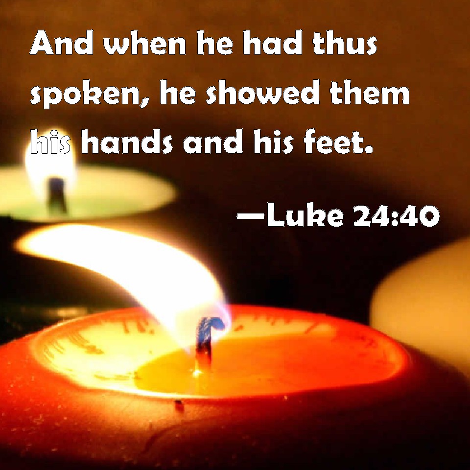Luke 24:40 And when he had thus spoken, he showed them his hands and his feet.