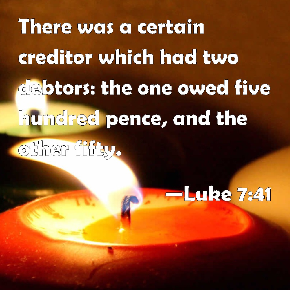 Luke 7:41 There was a certain creditor which had two debtors: the one owed five hundred pence, and the other fifty.
