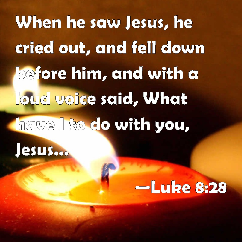 Luke 8:28 When he saw Jesus, he cried out, and fell down before him, and with a loud voice said, What have I to do with you, Jesus, you Son of God most high? I beseech you, torment me not.
