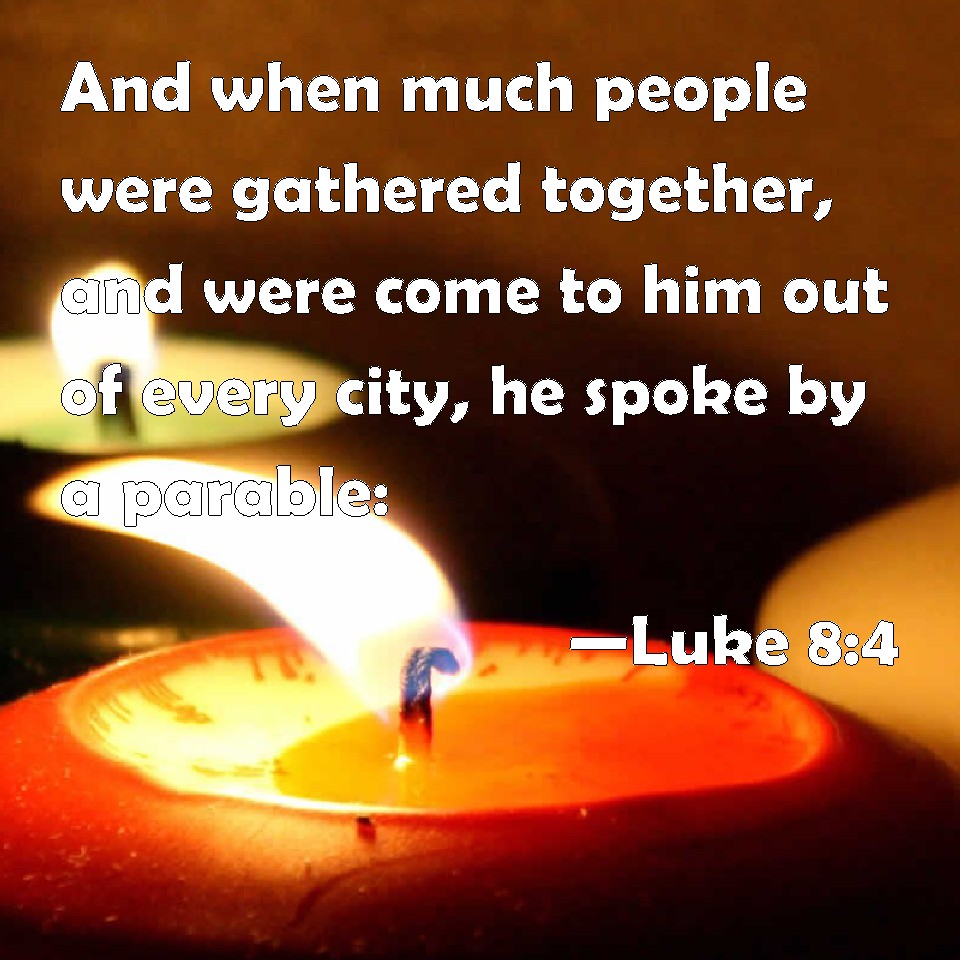 Choose a Background Luke 8:4 And when much people were gathered together, and were come to him out of every city, he spoke by a parable: KJV: And when much people were gathered together, and were come to him out of every city, he spake by a parable: DRB: And when a very great multitude was gathered together, and hastened out of the cities unto him, he spoke by a similitude. DBT: And a great crowd coming together, and those who were coming to him out of each city, he spoke by parable: ERV: And when a great multitude came together, and they of every city resorted unto him, he spake by a parable: WBT: And when many people were collected, and had come to him out of every city, he spoke by a parable: WEB: When a great multitude came together, and people from every city were coming to him, he spoke by a parable. YLT: And a great multitude having gathered, and those who from city and city were coming unto him, he spake by a simile:Links Luke 8:4 NIV • Luke 8:4 NLT • Luke 8:4 ESV • Luke 8:4 NASB • Luke 8:4 KJV • Luke 8:4 Interlinear • Luke 8:4 Commentaries • Luke 8:4 Parallel Texts • Luke 8:4 Bible Apps • Luke 8:4 Parallel • Bible Hub |