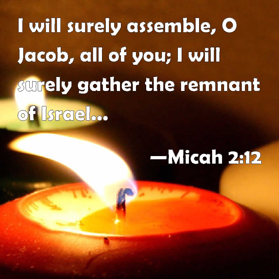 Choose a Background Micah 2:12 I will surely assemble, O Jacob, all of you; I will surely gather the remnant of Israel; I will put them together as the sheep of Bozrah, as the flock in the middle of their fold: they shall make great noise by reason of the multitude of men. KJV: I will surely assemble, O Jacob, all of thee; I will surely gather the remnant of Israel; I will put them together as the sheep of Bozrah, as the flock in the midst of their fold: they shall make great noise by reason of the multitude of men. DRB: I will assemble and gather together all of thee, O Jacob: I will bring together the remnant of Israel, I will put them together as a flock in the fold, as the sheep in the midst of the sheepcotes, they shall make a tumult by reason of the multitude of men. DBT: I will surely assemble, O Jacob, the whole of thee; I will surely gather the remnant of Israel; I will put them together as sheep of Bozrah, as a flock in the midst of their pasture: they shall make great noise by reason of the multitude of men. ERV: I will surely assemble, O Jacob, all of thee; I will surely gather the remnant of Israel; I will put them together as the sheep of Bozrah: as a flock in the midst of their pasture, they shall make great noise by reason of the multitude of men. WBT: I will surely assemble, O Jacob, all of thee; I will surely gather the remnant of Israel; I will put them together as the sheep of Bozrah, as the flock in the midst of their fold: they shall make great noise by reason of the multitude of men. WEB: I will surely assemble, Jacob, all of you; I will surely gather the remnant of Israel; I will put them together as the sheep of Bozrah, as a flock in the midst of their pasture; they will swarm with people. YLT: I do surely gather thee, O Jacob, all of thee, I surely bring together the remnant of Israel, Together I do set it as the flock of Bozrah, As a drove in the midst of its pasture, It maketh a noise because of man.Links Micah 2:12 NIV • Micah 2:12 NLT • Micah 2:12 ESV • Micah 2:12 NASB • Micah 2:12 KJV • Micah 2:12 Interlinear • Micah 2:12 Commentaries • Micah 2:12 Parallel Texts • Micah 2:12 Bible Apps • Micah 2:12 Parallel • Bible Hub |