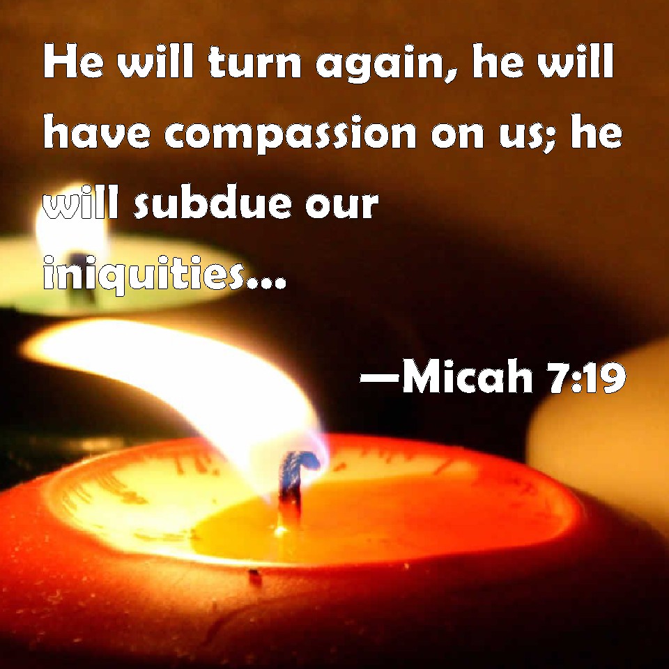 He will turn again, he will have compassion upon us; he will subdue our iniquities; and thou wilt cast all their sins into the depths of the sea.