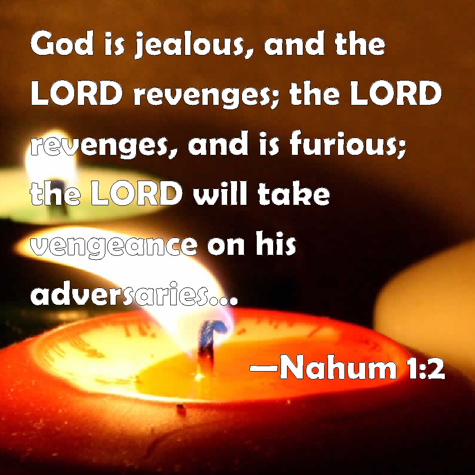 Nahum 1:2 God is jealous, and the LORD revenges; the LORD revenges, and is furious; the LORD will take vengeance on his adversaries, and he reserves wrath for his enemies.