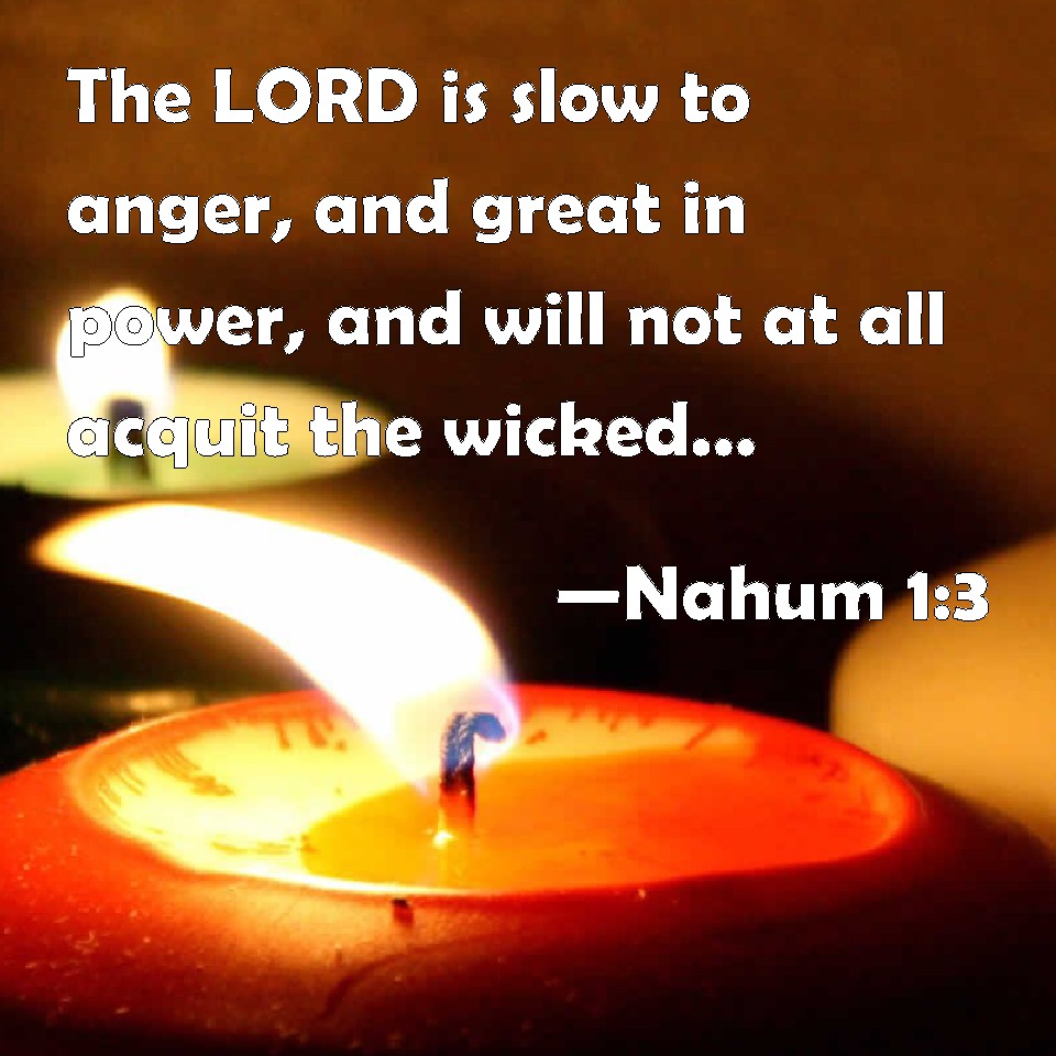 Choose a Background Nahum 1:3 The LORD is slow to anger, and great in power, and will not at all acquit the wicked: the LORD has his way in the whirlwind and in the storm, and the clouds are the dust of his feet. KJV: The LORD is slow to anger, and great in power, and will not at all acquit the wicked: the LORD hath his way in the whirlwind and in the storm, and the clouds are the dust of his feet. DRB: The Lord is patient, and great in power, and will not cleanse and acquit the guilty. The Lord's ways are in a tempest, and a whirlwind, and clouds are the dust of his feet. DBT: Jehovah is slow to anger, and great in power, and doth not at all clear the guilty: Jehovah, his way is in the whirlwind and in the storm, and the clouds are the dust of his feet. ERV: The LORD is slow to anger, and great in power, and will by no means clear the guilty: the LORD hath his way in the whirlwind and in the storm, and the clouds are the dust of his feet. WBT: The LORD is slow to anger, and great in power, and will not at all acquit the wicked: the LORD hath his way in the whirlwind and in the storm, and the clouds are the dust of his feet. WEB: Yahweh is slow to anger, and great in power, and will by no means leave the guilty unpunished. Yahweh has his way in the whirlwind and in the storm, and the clouds are the dust of his feet. YLT: Jehovah is slow to anger, and great in power, And Jehovah doth not entirely acquit, In a hurricane and in a tempest is His way, And a cloud is the dust of His feet.Links Nahum 1:3 NIV • Nahum 1:3 NLT • Nahum 1:3 ESV • Nahum 1:3 NASB • Nahum 1:3 KJV • Nahum 1:3 Interlinear • Nahum 1:3 Commentaries • Nahum 1:3 Parallel Texts • Nahum 1:3 Bible Apps • Nahum 1:3 Parallel • Bible Hub |