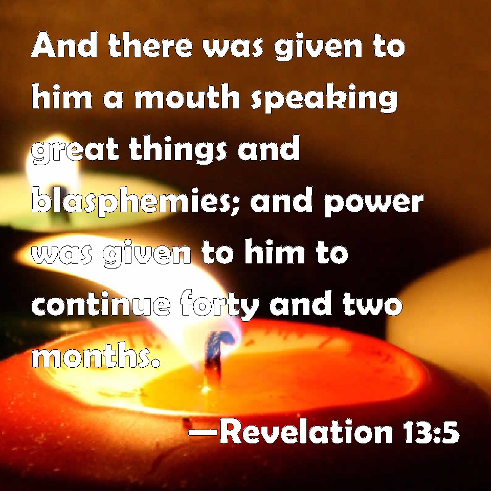 Revelation 13:5 And there was given to him a mouth speaking great things and blasphemies; and power was given to him to continue forty and two months.