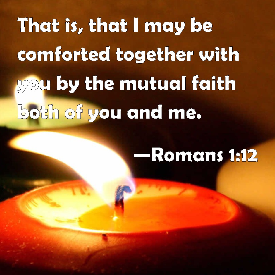 Choose a Background Romans 1:12 That is, that I may be comforted together with you by the mutual faith both of you and me. KJV: That is, that I may be comforted together with you by the mutual faith both of you and me. DRB: That is to say, that I may be comforted together in you, by that which is common to us both, your faith and mine. DBT: that is, to have mutual comfort among you, each by the faith which is in the other, both yours and mine. ERV: that is, that I with you may be comforted in you, each of us by the other's faith, both yours and mine. WBT: That is, that I may be comforted together with you, by the mutual faith both of you and me. WEB: that is, that I with you may be encouraged in you, each of us by the other's faith, both yours and mine. YLT: and that is, that I may be comforted together among you, through the faith in one another, both yours and mine.Links Romans 1:12 NIV • Romans 1:12 NLT • Romans 1:12 ESV • Romans 1:12 NASB • Romans 1:12 KJV • Romans 1:12 Interlinear • Romans 1:12 Commentaries • Romans 1:12 Parallel Texts • Romans 1:12 Bible Apps • Romans 1:12 Parallel • Bible Hub |