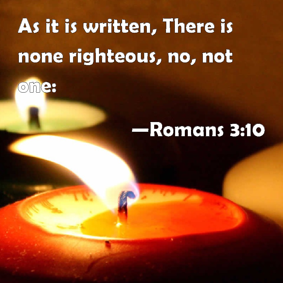 Choose a Background Romans 3:10 As it is written, There is none righteous, no, not one: KJV: As it is written, There is none righteous, no, not one: DRB: As it is written: There is not any man just. DBT: according as it is written, There is not a righteous man, not even one; ERV: as it is written, There is none righteous, no, not one; WBT: As it is written, There is none righteous, no, not one: WEB: As it is written, "There is no one righteous; no, not one. YLT: according as it hath been written — 'There is none righteous, not even one;Links Romans 3:10 NIV • Romans 3:10 NLT • Romans 3:10 ESV • Romans 3:10 NASB • Romans 3:10 KJV • Romans 3:10 Interlinear • Romans 3:10 Commentaries • Romans 3:10 Parallel Texts • Romans 3:10 Bible Apps • Romans 3:10 Parallel • Bible Hub |