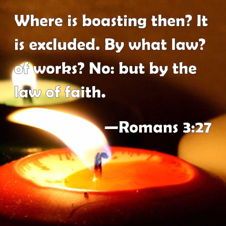 Romans 3:27 Where is boasting then? It is excluded. By what law? of works? No: but by the law of faith.