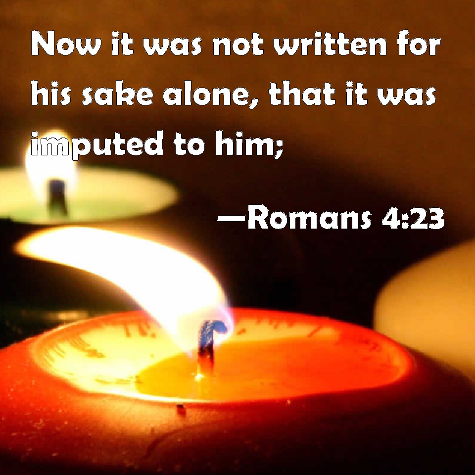Choose a Background Romans 4:23 Now it was not written for his sake alone, that it was imputed to him; KJV: Now it was not written for his sake alone, that it was imputed to him; DRB: Now it is not written only for him, that it was reputed to him unto justice, DBT: Now it was not written on his account alone that it was reckoned to him, ERV: Now it was not written for his sake alone, that it was reckoned unto him; WBT: Now it was not written for his sake alone, that it was imputed to him; WEB: Now it was not written that it was accounted to him for his sake alone, YLT: And it was not written on his account alone, that it was reckoned to him,Links Romans 4:23 NIV • Romans 4:23 NLT • Romans 4:23 ESV • Romans 4:23 NASB • Romans 4:23 KJV • Romans 4:23 Interlinear • Romans 4:23 Commentaries • Romans 4:23 Parallel Texts • Romans 4:23 Bible Apps • Romans 4:23 Parallel • Bible Hub |