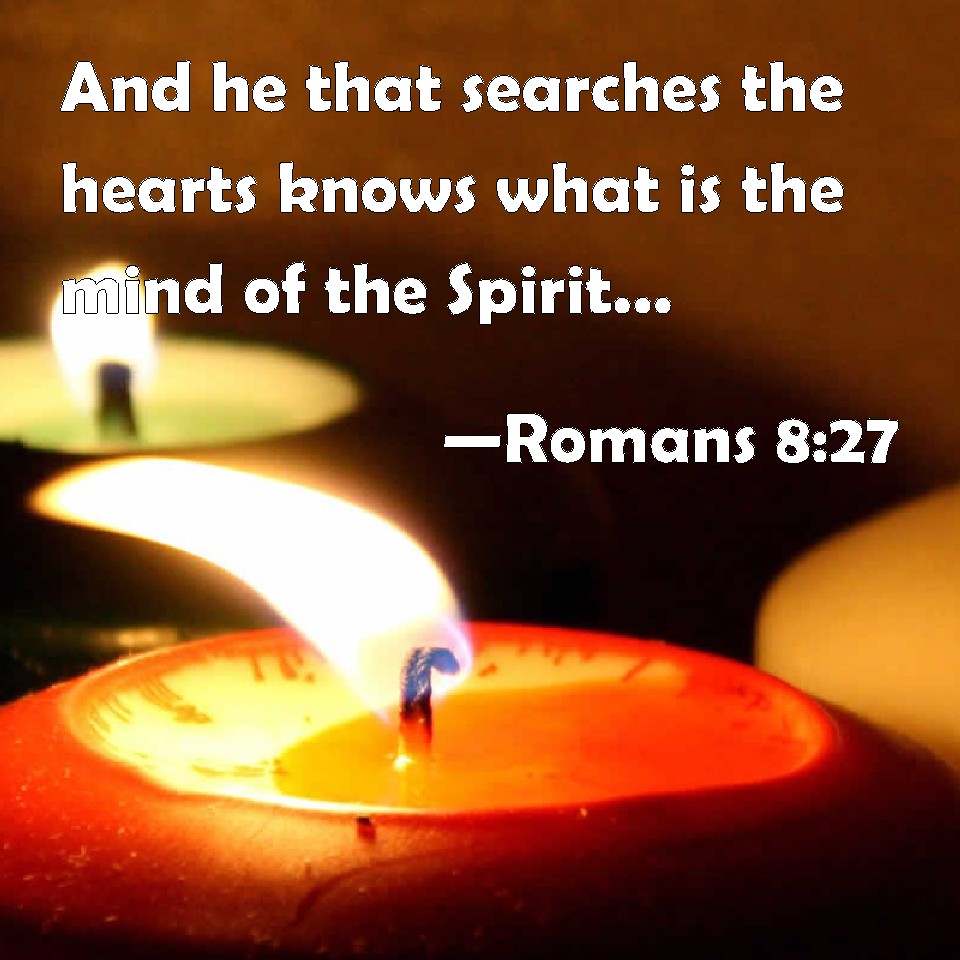 Romans 8:27 And he that searches the hearts knows what is the mind of the Spirit, because he makes intercession for the saints according to the will of God.