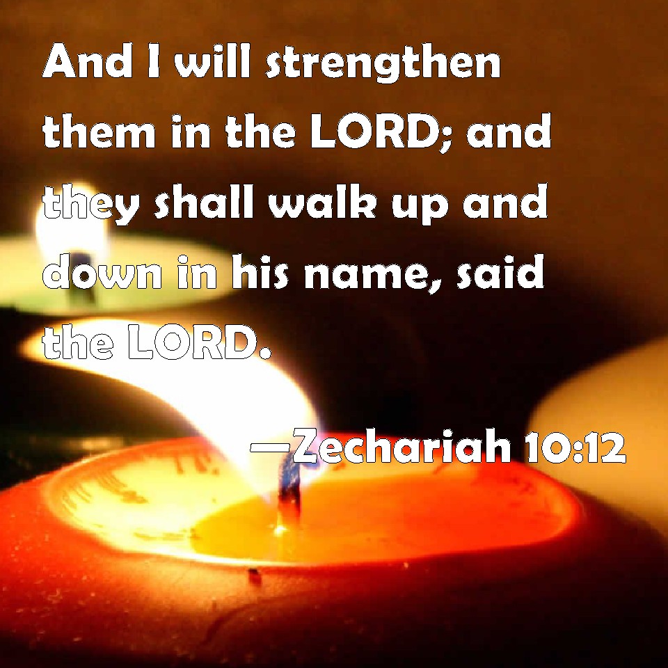 Choose a Background Zechariah 10:12 And I will strengthen them in the LORD; and they shall walk up and down in his name, said the LORD. KJV: And I will strengthen them in the LORD; and they shall walk up and down in his name, saith the LORD. DRB: I will strengthen them in the Lord, and they shall walk in his name, saith the Lord. DBT: And I will strengthen them in Jehovah; and they shall walk in his name, saith Jehovah. ERV: And I will strengthen them in the LORD; and they shall walk up and down in his name, saith the LORD. WBT: And I will strengthen them in the LORD; and they shall walk up and down in his name, saith the LORD. WEB: I will strengthen them in Yahweh; and they will walk up and down in his name," says Yahweh. YLT: And I have made them mighty in Jehovah, And in His name they walk up and down, An affirmation of Jehovah!Links Zechariah 10:12 NIV • Zechariah 10:12 NLT • Zechariah 10:12 ESV • Zechariah 10:12 NASB • Zechariah 10:12 KJV • Zechariah 10:12 Interlinear • Zechariah 10:12 Commentaries • Zechariah 10:12 Parallel Texts • Zechariah 10:12 Bible Apps • Zechariah 10:12 Parallel • Bible Hub |