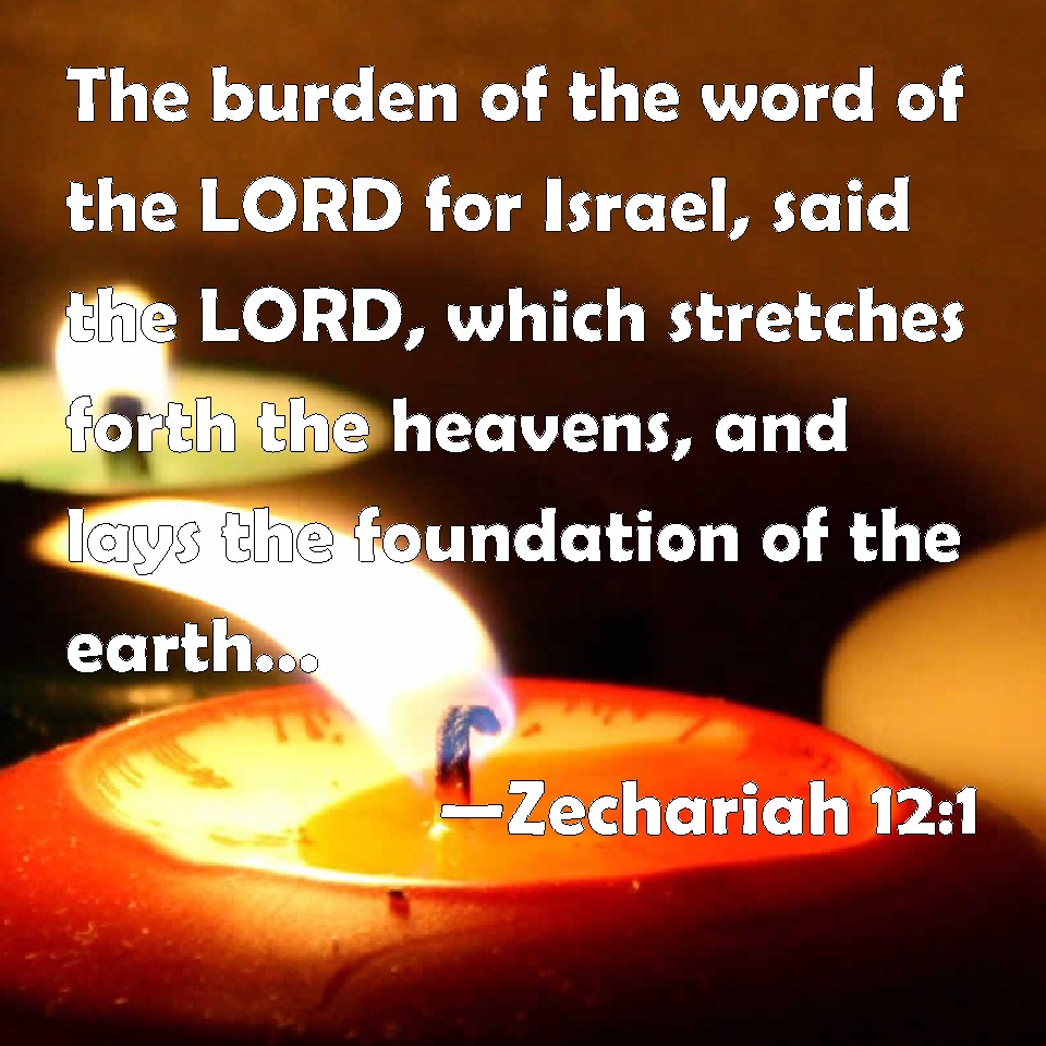 Choose a Background Zechariah 12:1 The burden of the word of the LORD for Israel, said the LORD, which stretches forth the heavens, and lays the foundation of the earth, and forms the spirit of man within him. KJV: The burden of the word of the LORD for Israel, saith the LORD, which stretcheth forth the heavens, and layeth the foundation of the earth, and formeth the spirit of man within him. DRB: The burden of the word of the Lord upon Israel. Thus saith the Lord, who stretcheth forth the heavens, and layeth the foundations of the earth, and formeth the spirit of man in him : DBT: The burden of the word of Jehovah concerning Israel. Thus saith Jehovah, who stretcheth out the heavens, and layeth the foundation of the earth, and formeth the spirit of man within him: ERV: The burden of the word of the LORD concerning Israel. Thus saith the LORD, which stretcheth forth the heavens, and layeth the foundation of the earth, and formeth the spirit of man within him: WBT: The burden of the word of the LORD for Israel, saith the LORD, who stretcheth forth the heavens, and layeth the foundation of the earth, and formeth the spirit of man within him. WEB: An oracle. The word of Yahweh concerning Israel. Yahweh, who stretches out the heavens, and lays the foundation of the earth, and forms the spirit of man within him says: YLT: The burden of a word of Jehovah on Israel. An affirmation of Jehovah, Stretching out heaven, and founding earth, And forming the spirit of man in his midst.Links Zechariah 12:1 NIV • Zechariah 12:1 NLT • Zechariah 12:1 ESV • Zechariah 12:1 NASB • Zechariah 12:1 KJV • Zechariah 12:1 Interlinear • Zechariah 12:1 Commentaries • Zechariah 12:1 Parallel Texts • Zechariah 12:1 Bible Apps • Zechariah 12:1 Parallel • Bible Hub |