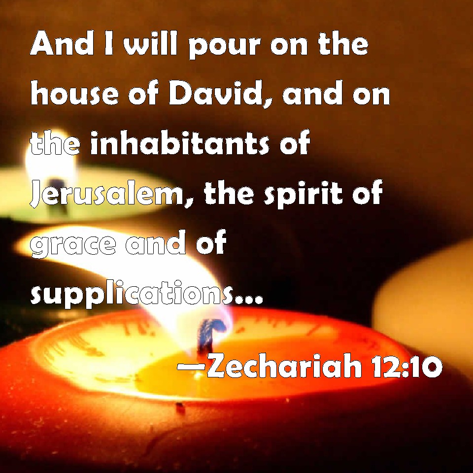 Choose a Background Zechariah 12:10 And I will pour on the house of David, and on the inhabitants of Jerusalem, the spirit of grace and of supplications: and they shall look on me whom they have pierced, and they shall mourn for him, as one mourns for his only son, and shall be in bitterness for him, as one that is in bitterness for his firstborn. KJV: And I will pour upon the house of David, and upon the inhabitants of Jerusalem, the spirit of grace and of supplications: and they shall look upon me whom they have pierced, and they shall mourn for him, as one mourneth for his only son, and shall be in bitterness for him, as one that is in bitterness for his firstborn. DRB: And I will pour out upon the house of David, and upon the inhabitants of Jerusalem, the spirit of grace, and of prayers: and they shall look upon me, whom they have pierced: and they shall mourn for him as one mourneth for an only son, and they shall grieve over him, as the manner is to grieve for the death of the firstborn. DBT: And I will pour upon the house of David and upon the inhabitants of Jerusalem the spirit of grace and of supplications; and they shall look on me whom they pierced, and they shall mourn for him, as one mourneth for an only son, and shall be in bitterness for him, as one that is in bitterness for his firstborn. ERV: And I will pour upon the house of David, and upon the inhabitants of Jerusalem, the spirit of grace and of supplication; and they shall look unto me whom they have pierced: and they shall mourn for him, as one mourneth for his only son, and shall be in bitterness for him, as one that is in bitterness for his firstborn. WBT: And I will pour upon the house of David, and upon the inhabitants of Jerusalem, the spirit of grace and of supplications: and they shall look upon me whom they have pierced, and they shall mourn for him, as one mourneth for his only son, and shall be in bitterness for him, as one that is in bitterness for his first-born. WEB: I will pour on the house of David, and on the inhabitants of Jerusalem, the spirit of grace and of supplication; and they will look to me whom they have pierced; and they shall mourn for him, as one mourns for his only son, and will grieve bitterly for him, as one grieves for his firstborn. YLT: And I have poured on the house of David, And on the inhabitant of Jerusalem, A spirit of grace and supplications, And they have looked unto Me whom they pierced, And they have mourned over it, Like a mourning over the only one, And they have been in bitterness for it, Like a bitterness over the first-born.Links Zechariah 12:10 NIV • Zechariah 12:10 NLT • Zechariah 12:10 ESV • Zechariah 12:10 NASB • Zechariah 12:10 KJV • Zechariah 12:10 Interlinear • Zechariah 12:10 Commentaries • Zechariah 12:10 Parallel Texts • Zechariah 12:10 Bible Apps • Zechariah 12:10 Parallel • Bible Hub |