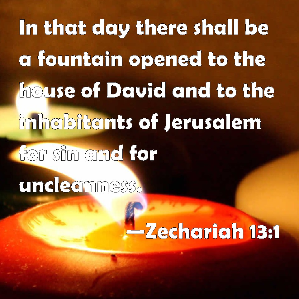 Zechariah 13:1 In that day there shall be a fountain opened to the house of David and to the inhabitants of Jerusalem for sin and for uncleanness.