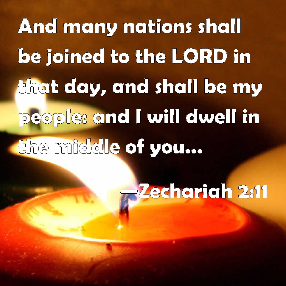 Choose a Background Zechariah 2:11 And many nations shall be joined to the LORD in that day, and shall be my people: and I will dwell in the middle of you, and you shall know that the LORD of hosts has sent me to you. KJV: And many nations shall be joined to the LORD in that day, and shall be my people: and I will dwell in the midst of thee, and thou shalt know that the LORD of hosts hath sent me unto thee. DRB: And many nations shall be joined to the Lord in that day, and they shall be my people, and I will dwell in the midst of thee: and thou shalt know that the Lord of hosts hath sent me to thee. DBT: And many nations shall join themselves to Jehovah in that day, and shall be unto me for a people; and I will dwell in the midst of thee, and thou shalt know that Jehovah of hosts hath sent me unto thee. ERV: And many nations shall join themselves to the LORD in that day, and shall be my people: and I will dwell in the midst of thee, and thou shalt know that the LORD of hosts hath sent me unto thee. WBT: And many nations shall be joined to the LORD in that day, and shall be my people: and I will dwell in the midst of thee, and thou shalt know that the LORD of hosts hath sent me to thee. WEB: Many nations shall join themselves to Yahweh in that day, and shall be my people; and I will dwell in the midst of you, and you shall know that Yahweh of Armies has sent me to you. YLT: And joined have been many nations unto Jehovah in that day, And they have been to Me for a people, And I have dwelt in thy midst, And thou hast known that Jehovah of Hosts hath sent me unto thee.Links Zechariah 2:11 NIV • Zechariah 2:11 NLT • Zechariah 2:11 ESV • Zechariah 2:11 NASB • Zechariah 2:11 KJV • Zechariah 2:11 Interlinear • Zechariah 2:11 Commentaries • Zechariah 2:11 Parallel Texts • Zechariah 2:11 Bible Apps • Zechariah 2:11 Parallel • Bible Hub |