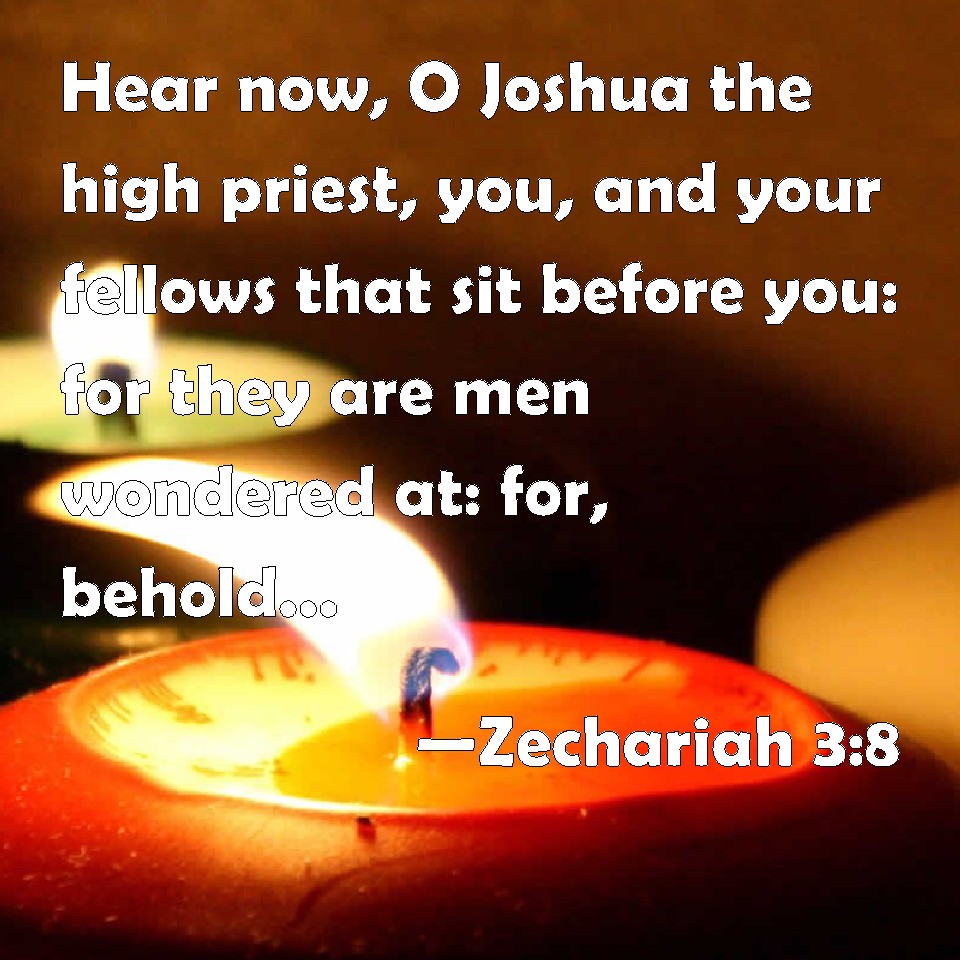 ERV:  Hear now, O Joshua the high priest, thou and thy fellows that sit before thee; for they are men which are a sign: for, behold, I will bring forth my servant the Branch.