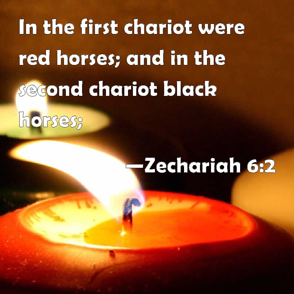 Zechariah 6:2 In the first chariot were red horses; and in the second chariot black horses;