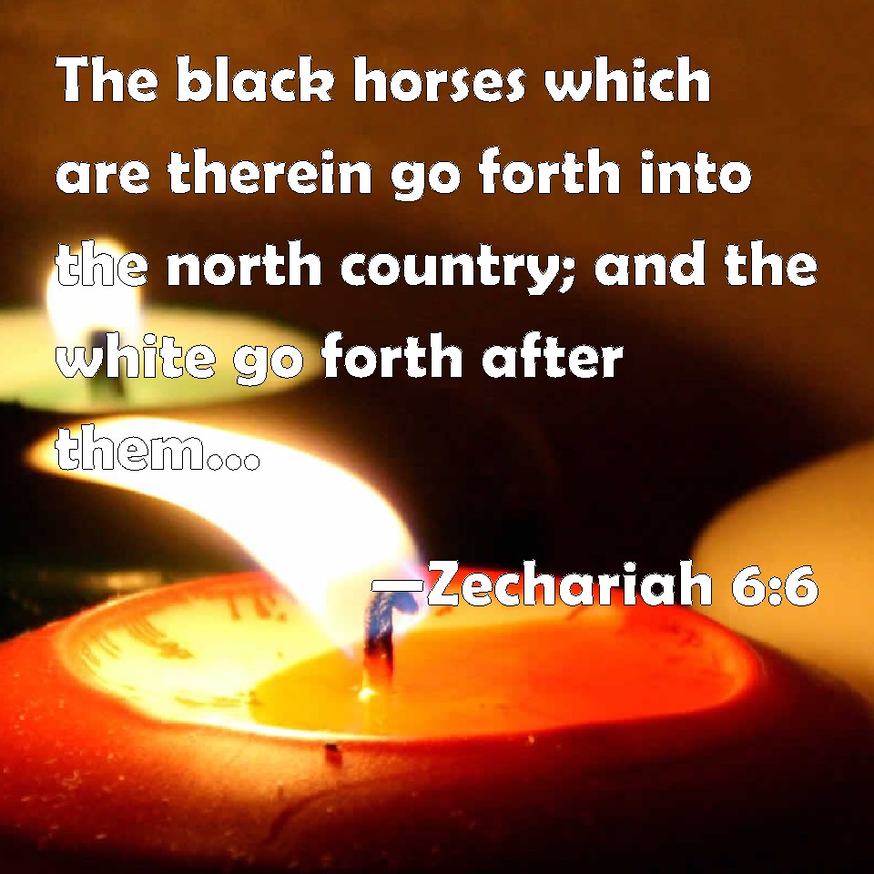Zechariah 6:6 The black horses which are therein go forth into the north country; and the white go forth after them; and the spotted go forth toward the south country.