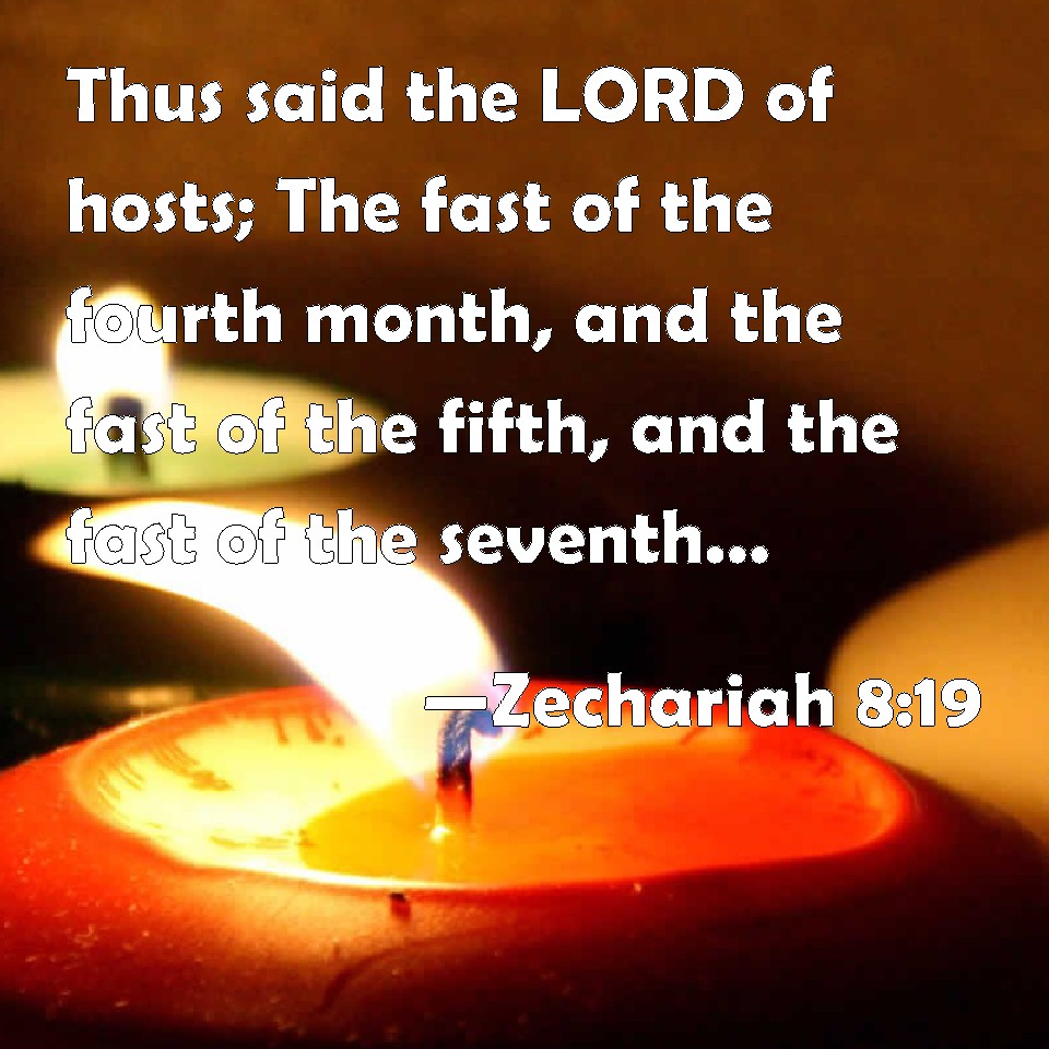 Choose a Background Zechariah 8:19 Thus said the LORD of hosts; The fast of the fourth month, and the fast of the fifth, and the fast of the seventh, and the fast of the tenth, shall be to the house of Judah joy and gladness, and cheerful feasts; therefore love the truth and peace. KJV: Thus saith the LORD of hosts; The fast of the fourth month, and the fast of the fifth, and the fast of the seventh, and the fast of the tenth, shall be to the house of Judah joy and gladness, and cheerful feasts; therefore love the truth and peace. DRB: Thus saith the Lord of hosts: The fast of the fourth month, and the fast of the fifth, and the fast of the seventh, and the fast of the tenth shall be to the house of Juda, joy, and gladness, and great solemnities: only love ye truth and peace. DBT: Thus saith Jehovah of hosts: The fast of the fourth month and the fast of the fifth, and the fast of the seventh, and the fast of the tenth, shall be to the house of Judah joy and gladness, and cheerful gatherings. Love ye then truth and peace. ERV: Thus saith the LORD of hosts: The fast of the fourth month, and the fast of the fifth, and the fast of the seventh, and the fast of the tenth, shall be to the house of Judah joy and gladness, and cheerful feasts; therefore love truth and peace. WBT: Thus saith the LORD of hosts; The fast of the fourth month, and the fast of the fifth, and the fast of the seventh, and the fast of the tenth, shall be to the house of Judah joy and gladness, and cheerful feasts; therefore love the truth and peace. WEB: Thus says Yahweh of Armies: "The fasts of the fourth fifth, seventh, and tenth months shall be for the house of Judah joy and gladness, and cheerful feasts. Therefore love truth and peace." YLT: Thus said Jehovah of Hosts: The fast of the fourth, and the fast of the fifth, and the fast of the seventh, and the fast of the tenth months, are to the house of Judah for joy and for rejoicing, and for pleasant appointed seasons, and the truth and the peace they have loved.Links Zechariah 8:19 NIV • Zechariah 8:19 NLT • Zechariah 8:19 ESV • Zechariah 8:19 NASB • Zechariah 8:19 KJV • Zechariah 8:19 Interlinear • Zechariah 8:19 Commentaries • Zechariah 8:19 Parallel Texts • Zechariah 8:19 Bible Apps • Zechariah 8:19 Parallel • Bible Hub |