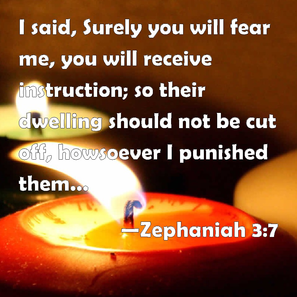 Choose a Background Zephaniah 3:7 I said, Surely you will fear me, you will receive instruction; so their dwelling should not be cut off, howsoever I punished them: but they rose early, and corrupted all their doings. KJV: I said, Surely thou wilt fear me, thou wilt receive instruction; so their dwelling should not be cut off, howsoever I punished them: but they rose early, and corrupted all their doings. DRB: I said: Surely thou wilt fear me, thou wilt receive correction: and her dwelling shall not perish, for all things wherein I have visited her: but they rose early and corrupted all their thoughts. DBT: I said, Only fear me, receive correction; so her dwelling shall not be cut off, howsoever I may punish her. But they rose early, they corrupted all their doings. ERV: I said, Surely thou wilt fear me, thou wilt receive correction; so her dwelling should not be cut off, according to all that I have appointed concerning her: but they rose early and corrupted all their doings. WBT: I said, Surely thou wilt fear me, thou wilt receive instruction; so their dwelling should not be cut off, however I punished them: but they rose early, and corrupted all their doings. WEB: I said, "Just fear me. Receive correction, so that her dwelling won't be cut off, according to all that I have appointed concerning her." But they rose early and corrupted all their doings. YLT: I have said: Only, ye do fear Me, Ye do accept instruction, And her habitation is not cut off, All that I have appointed for her, But they have risen early, They have corrupted all their doings.Links Zephaniah 3:7 NIV • Zephaniah 3:7 NLT • Zephaniah 3:7 ESV • Zephaniah 3:7 NASB • Zephaniah 3:7 KJV • Zephaniah 3:7 Interlinear • Zephaniah 3:7 Commentaries • Zephaniah 3:7 Parallel Texts • Zephaniah 3:7 Bible Apps • Zephaniah 3:7 Parallel • Bible Hub |