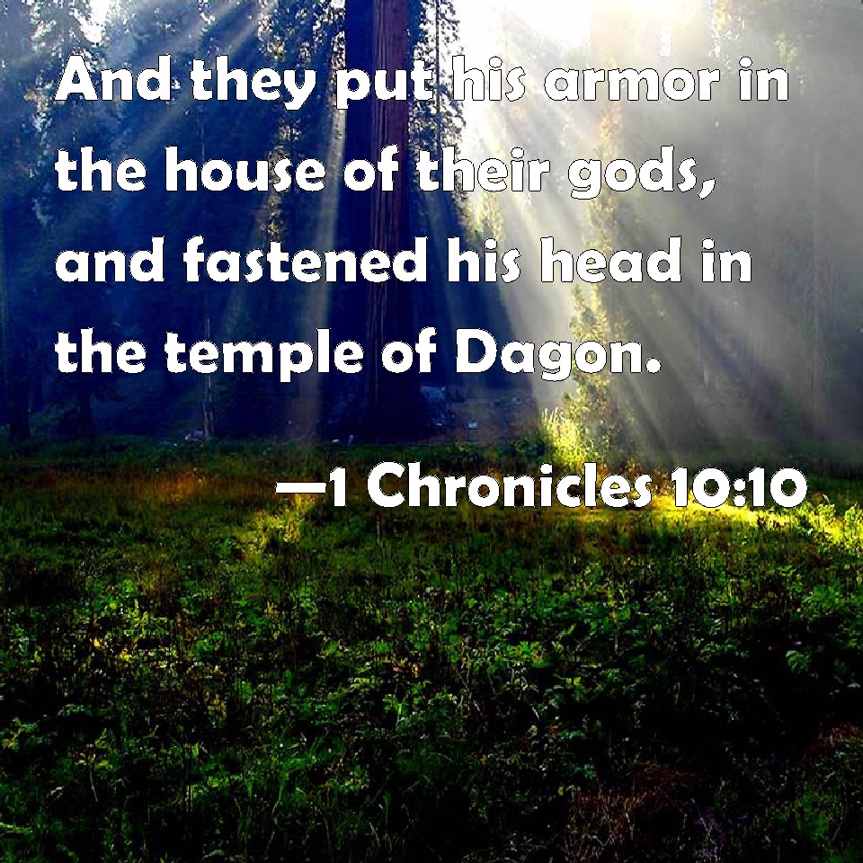 1 Chronicles 10:10 And they put his armor in the house of their gods, and fastened his head in the temple of Dagon.