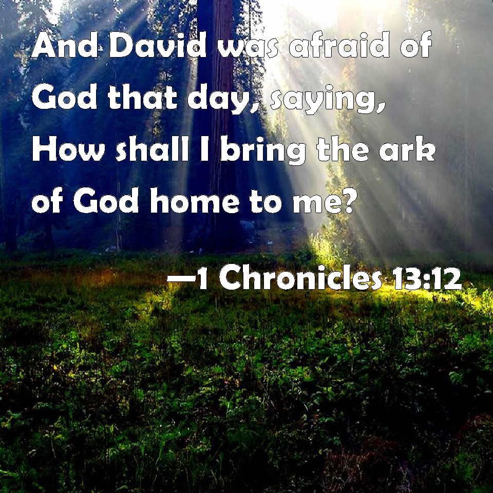 Choose a Background 1 Chronicles 13:12 And David was afraid of God that day, saying, How shall I bring the ark of God home to me? KJV: And David was afraid of God that day, saying, How shall I bring the ark of God home to me? DRB: And he feared God at that time, saying: How can I bring in the ark of God to me? DBT: And David was afraid of God that day, saying, How shall I bring the ark of God to me? ERV: And David was afraid of God that day, saying, How shall I bring the ark of God home to me? WBT: And David was afraid of God that day, saying, How shall I bring the ark of God home to me? WEB: David was afraid of God that day, saying, "How shall I bring the ark of God home to me?" YLT: And David feareth God on that day, saying, 'How do I bring in unto me the ark of God?'Links 1 Chronicles 13:12 NIV • 1 Chronicles 13:12 NLT • 1 Chronicles 13:12 ESV • 1 Chronicles 13:12 NASB • 1 Chronicles 13:12 KJV • 1 Chronicles 13:12 Interlinear • 1 Chronicles 13:12 Commentaries • 1 Chronicles 13:12 Parallel Texts • 1 Chronicles 13:12 Bible Apps • 1 Chronicles 13:12 Parallel • Bible Hub |