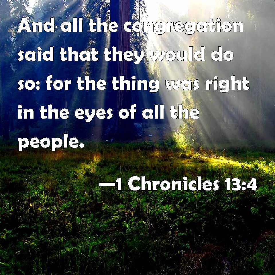 1 Chronicles 13:4 And all the congregation said that they would do so: for the thing was right in the eyes of all the people.