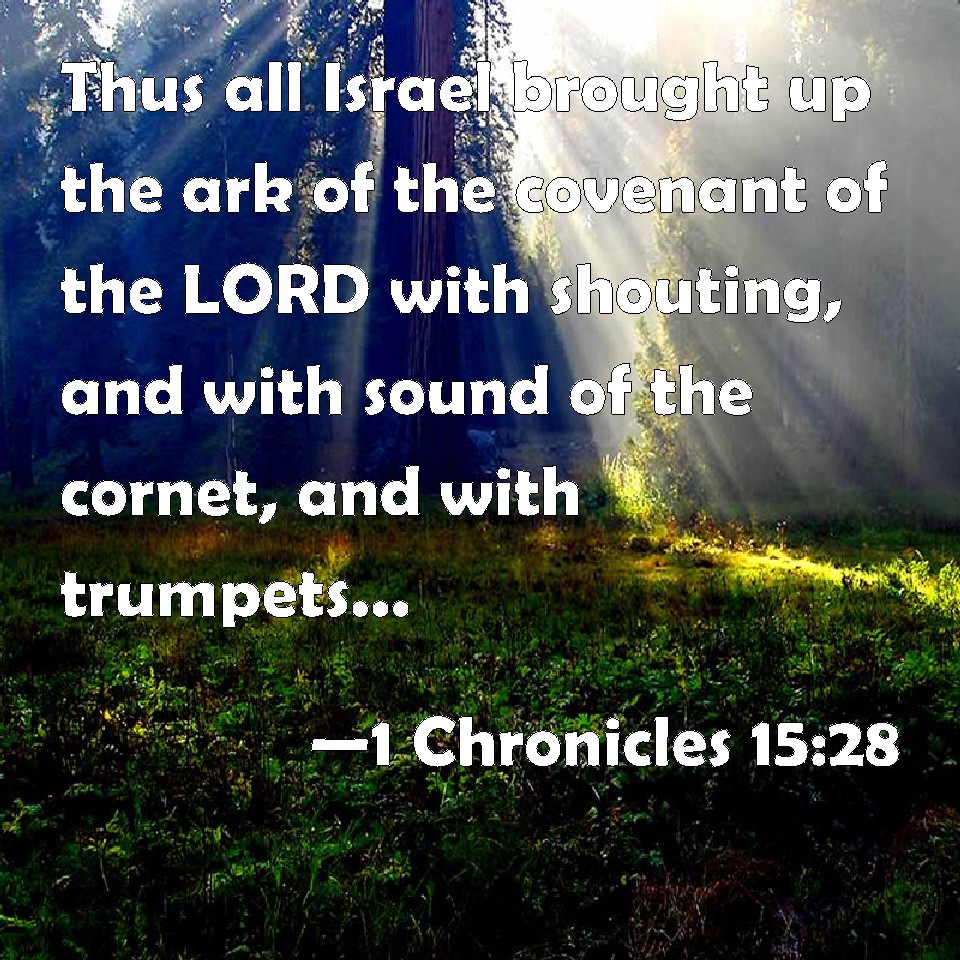 Choose a Background 1 Chronicles 15:28 Thus all Israel brought up the ark of the covenant of the LORD with shouting, and with sound of the cornet, and with trumpets, and with cymbals, making a noise with psalteries and harps. KJV: Thus all Israel brought up the ark of the covenant of the LORD with shouting, and with sound of the cornet, and with trumpets, and with cymbals, making a noise with psalteries and harps. DRB: And all Israel brought the ark of the covenant of the Lord with joyful shouting, and sounding with the sound of the comet, and with trumpets, and cymbals, and psalteries, and harps. DBT: And all Israel brought up the ark of the covenant of Jehovah with shouting, and with sound of the trumpet, and with clarions, and with cymbals, playing aloud with lutes and harps. ERV: Thus all Israel brought up the ark of the covenant of the LORD with shouting, and with sound of the cornet, and with trumpets, and with cymbals, sounding aloud with psalteries and harps. WBT: Thus all Israel brought up the ark of the covenant of the LORD with shouting, and with sound of the cornet, and with trumpets, and with cymbals, making a noise with psalteries and harps. WEB: Thus all Israel brought up the ark of the covenant of Yahweh with shouting, and with sound of the cornet, and with trumpets, and with cymbals, sounding aloud with stringed instruments and harps. YLT: And all Israel are bringing up the ark of the covenant of Jehovah with shouting, and with the sound of a cornet, and with trumpets, and with cymbals, sounding with psalteries and harps,Links 1 Chronicles 15:28 NIV • 1 Chronicles 15:28 NLT • 1 Chronicles 15:28 ESV • 1 Chronicles 15:28 NASB • 1 Chronicles 15:28 KJV • 1 Chronicles 15:28 Interlinear • 1 Chronicles 15:28 Commentaries • 1 Chronicles 15:28 Parallel Texts • 1 Chronicles 15:28 Bible Apps • 1 Chronicles 15:28 Parallel • Bible Hub |
