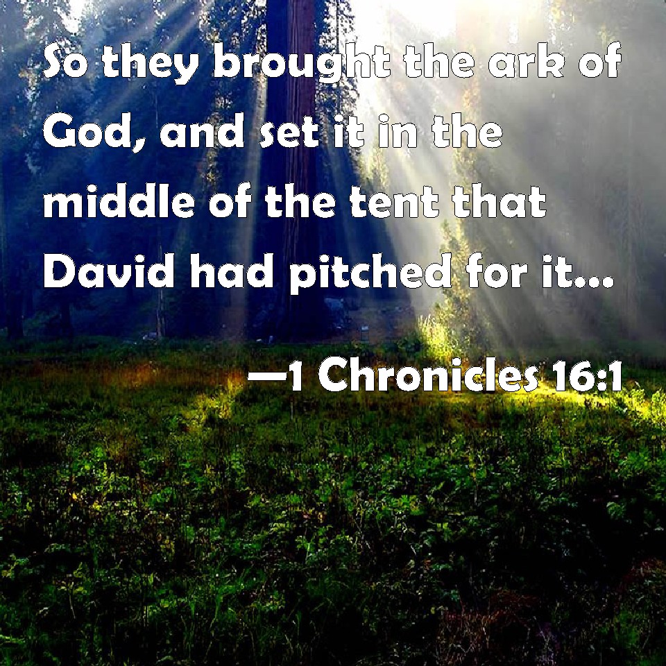 Choose a Background 1 Chronicles 16:1 So they brought the ark of God, and set it in the middle of the tent that David had pitched for it: and they offered burnt sacrifices and peace offerings before God. KJV: So they brought the ark of God, and set it in the midst of the tent that David had pitched for it: and they offered burnt sacrifices and peace offerings before God. DRB: So they brought the ark of God, and set it in the midst of the tent, which David had pitched for it : and they offered holocausts, and peace offerings before God. DBT: And they brought in the ark of God, and set it in the midst of the tent that David had spread for it; and they presented burnt-offerings and peace-offerings before God. ERV: And they brought in the ark of God, and set it in the midst of the tent that David had pitched for it: and they offered burnt offerings and peace offerings before God. WBT: So they brought the ark of God, and set it in the midst of the tent that David had pitched for it: and they offered burnt-sacrifices and peace-offerings before God. WEB: They brought in the ark of God, and set it in the midst of the tent that David had pitched for it: and they offered burnt offerings and peace offerings before God. YLT: And they bring in the ark of God, and set it up in the midst of the tent that David hath stretched out for it, and they bring near burnt-offerings and peace-offerings before God;Links 1 Chronicles 16:1 NIV • 1 Chronicles 16:1 NLT • 1 Chronicles 16:1 ESV • 1 Chronicles 16:1 NASB • 1 Chronicles 16:1 KJV • 1 Chronicles 16:1 Interlinear • 1 Chronicles 16:1 Commentaries • 1 Chronicles 16:1 Parallel Texts • 1 Chronicles 16:1 Bible Apps • 1 Chronicles 16:1 Parallel • Bible Hub |