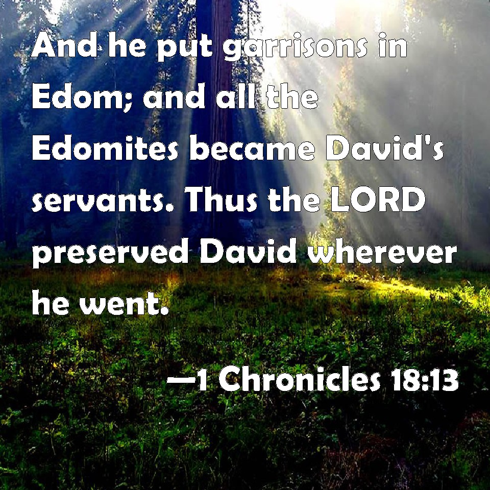 1 Chronicles 18:13 And he put garrisons in Edom; and all the Edomites became David's servants. Thus the LORD preserved David wherever he went.