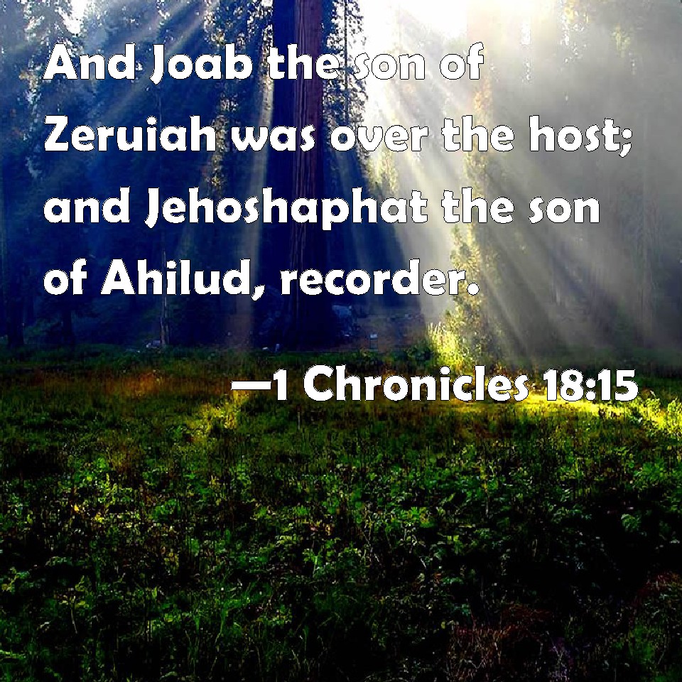 1 Chronicles 18:15 And Joab the son of Zeruiah was over the host; and Jehoshaphat the son of Ahilud, recorder.