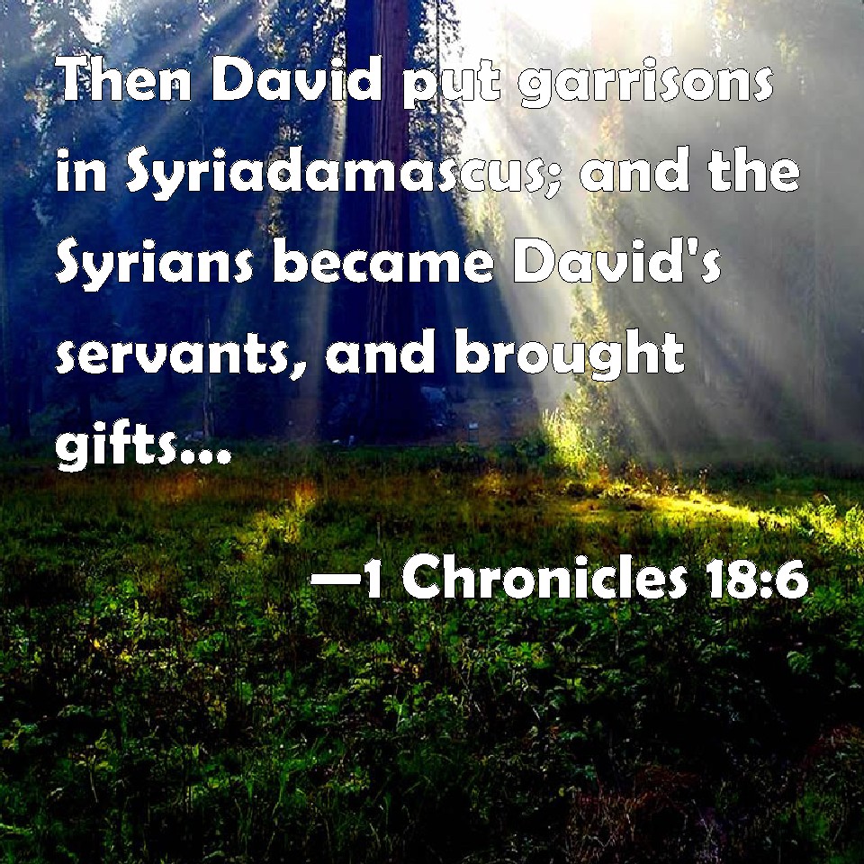 1 Chronicles 18:6 Then David put garrisons in Syriadamascus; and the Syrians became David's servants, and brought gifts. Thus the LORD preserved David wherever he went.