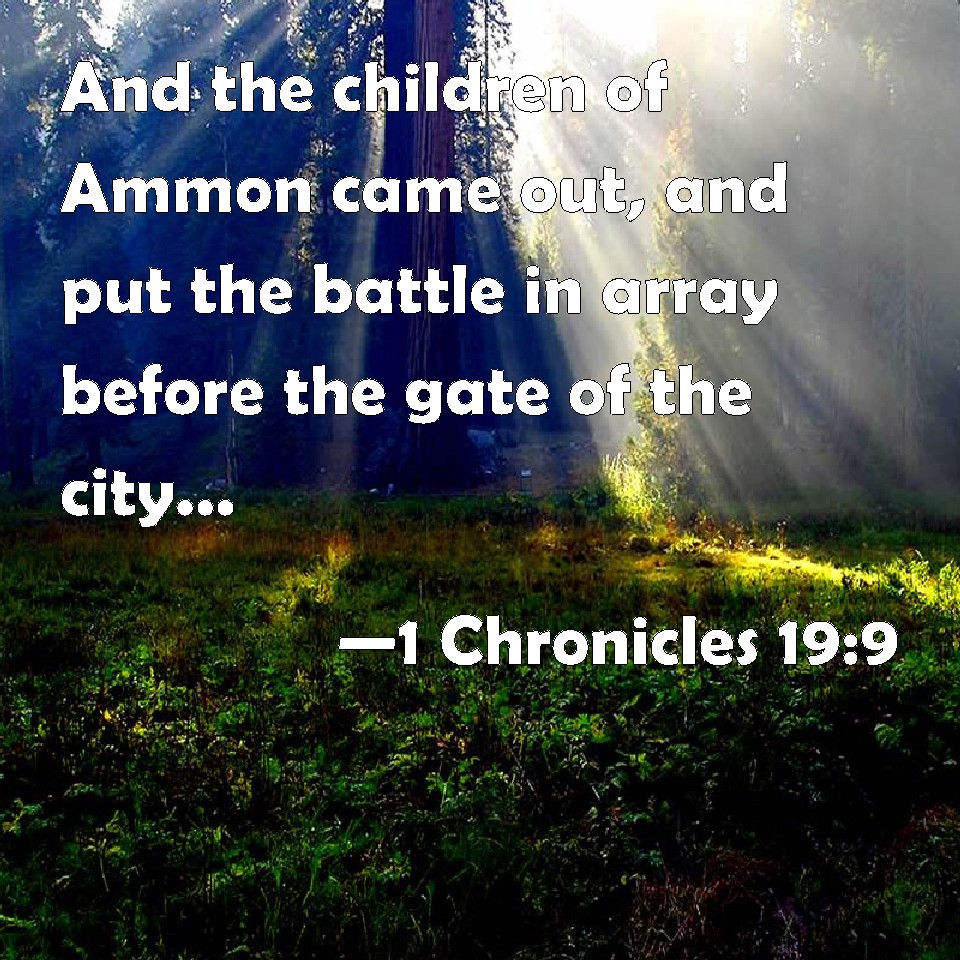 1 Chronicles 19:9 And the children of Ammon came out, and put the battle in array before the gate of the city: and the kings that were come were by themselves in the field.