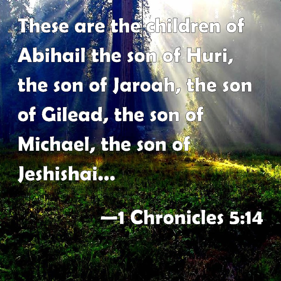 1 Chronicles 5:14 These are the children of Abihail the son of Huri, the son of Jaroah, the son of Gilead, the son of Michael, the son of Jeshishai, the son of Jahdo, the son of Buz;