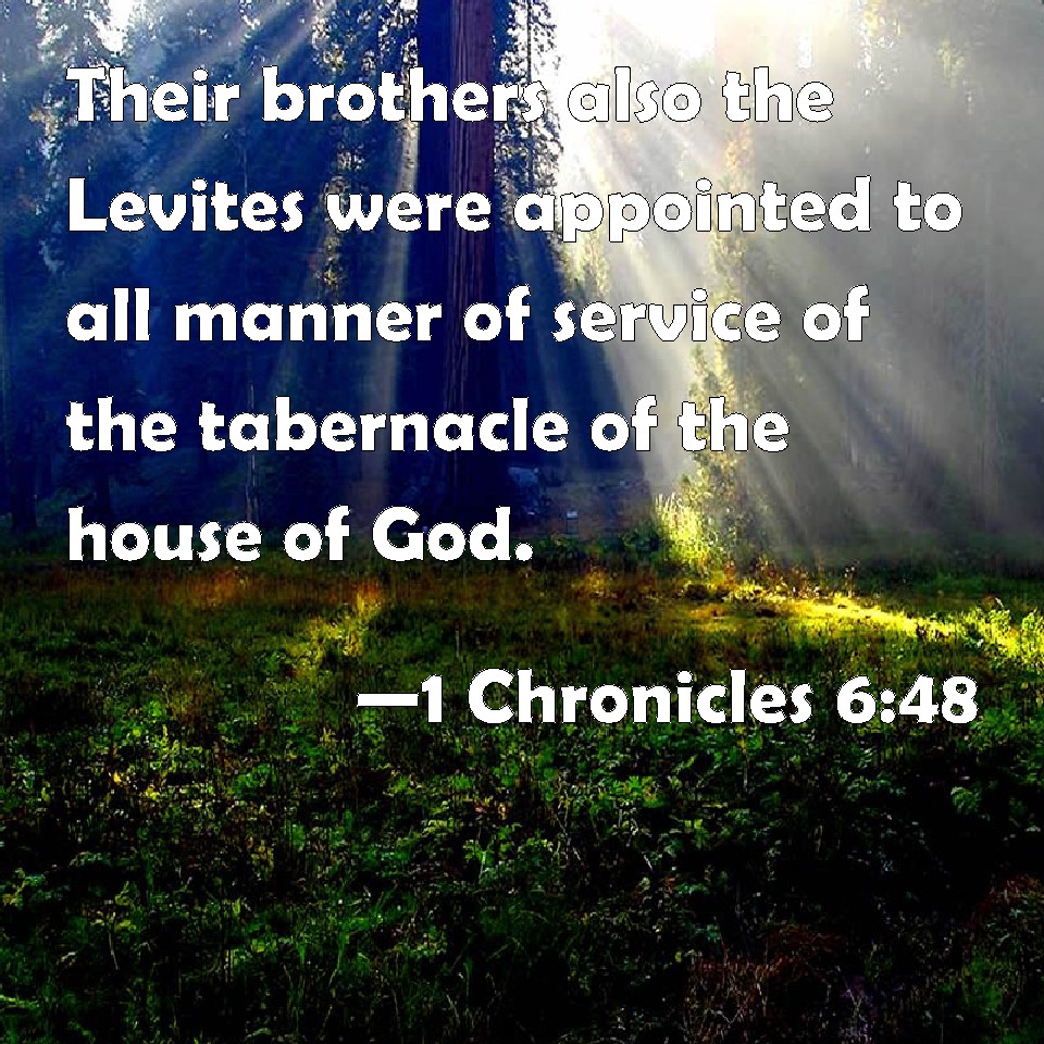 1 Chronicles 6:48 Their brothers also the Levites were appointed to all manner of service of the tabernacle of the house of God.
