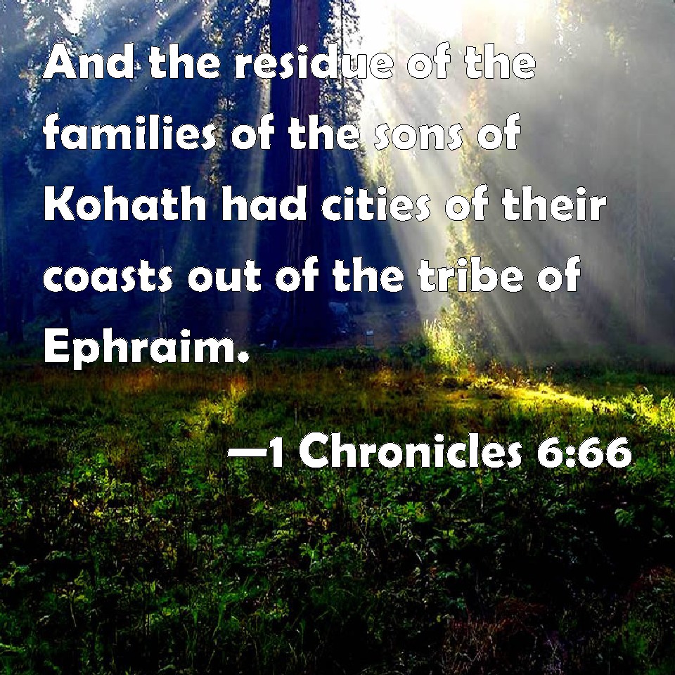 1 Chronicles 6:66 And the residue of the families of the sons of Kohath had cities of their coasts out of the tribe of Ephraim.