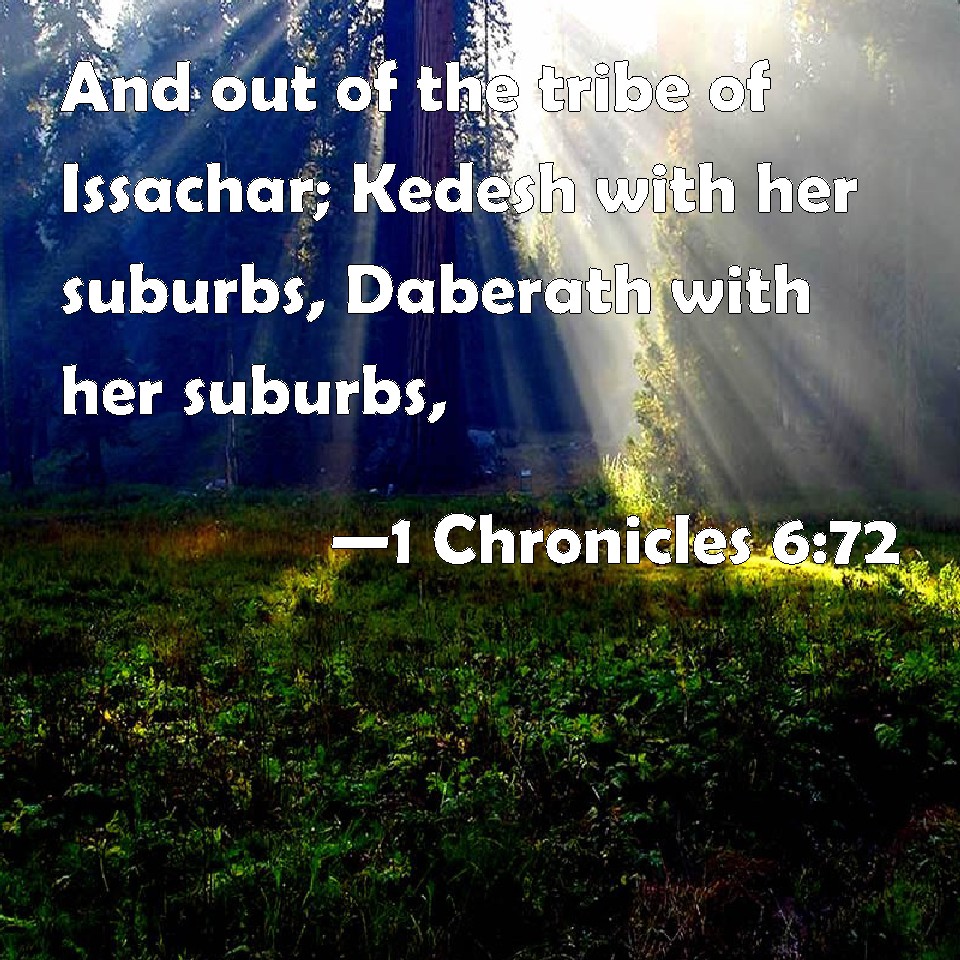 Choose a Background 1 Chronicles 6:72 And out of the tribe of Issachar; Kedesh with her suburbs, Daberath with her suburbs, KJV: And out of the tribe of Issachar; Kedesh with her suburbs, Daberath with her suburbs, DRB: Out of the tribe of Issachar, Cedes and its suburbs, and Dabereth with its suburbs; DBT: and out of the tribe of Issachar: Kedesh and its suburbs, Dobrath and its suburbs, ERV: and out of the tribe of Issachar; Kedesh with her suburbs, Daberath with her suburbs; WBT: And out of the tribe of Issachar; Kedesh with its suburbs, Daberath with its suburbs, WEB: and out of the tribe of Issachar, Kedesh with its suburbs, Daberath with its suburbs, YLT: and from the tribe of Issachar; Kedesh and its suburbs, Daberath and its suburbs,Links 1 Chronicles 6:72 NIV • 1 Chronicles 6:72 NLT • 1 Chronicles 6:72 ESV • 1 Chronicles 6:72 NASB • 1 Chronicles 6:72 KJV • 1 Chronicles 6:72 Interlinear • 1 Chronicles 6:72 Commentaries • 1 Chronicles 6:72 Parallel Texts • 1 Chronicles 6:72 Bible Apps • 1 Chronicles 6:72 Parallel • Bible Hub |