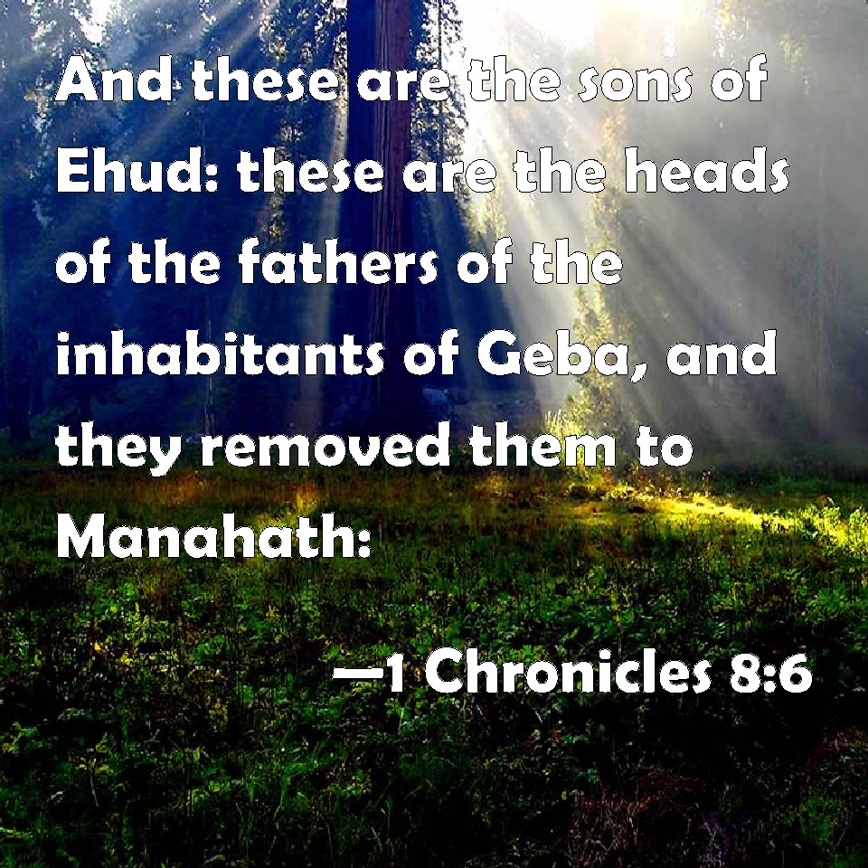 1 Chronicles 8:6 And these are the sons of Ehud: these are the heads of the fathers of the inhabitants of Geba, and they removed them to Manahath: