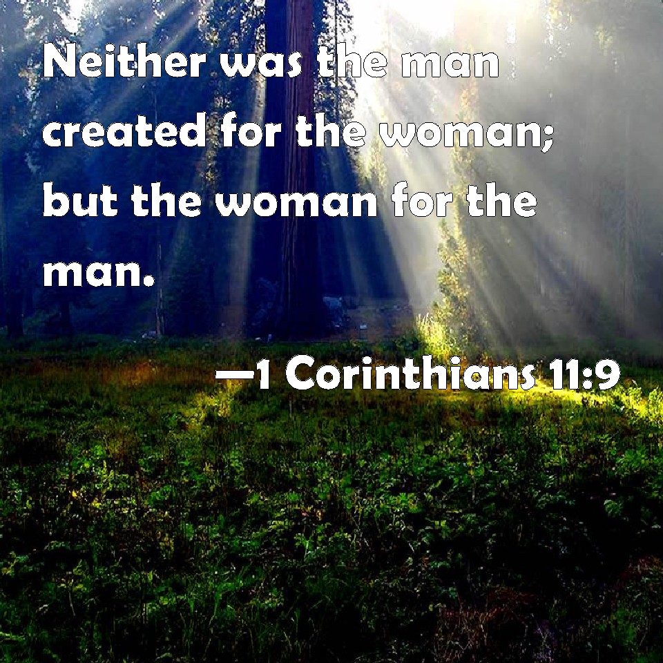 1 Corinthians 11:9 Neither was the man created for the woman; but the woman for the man.